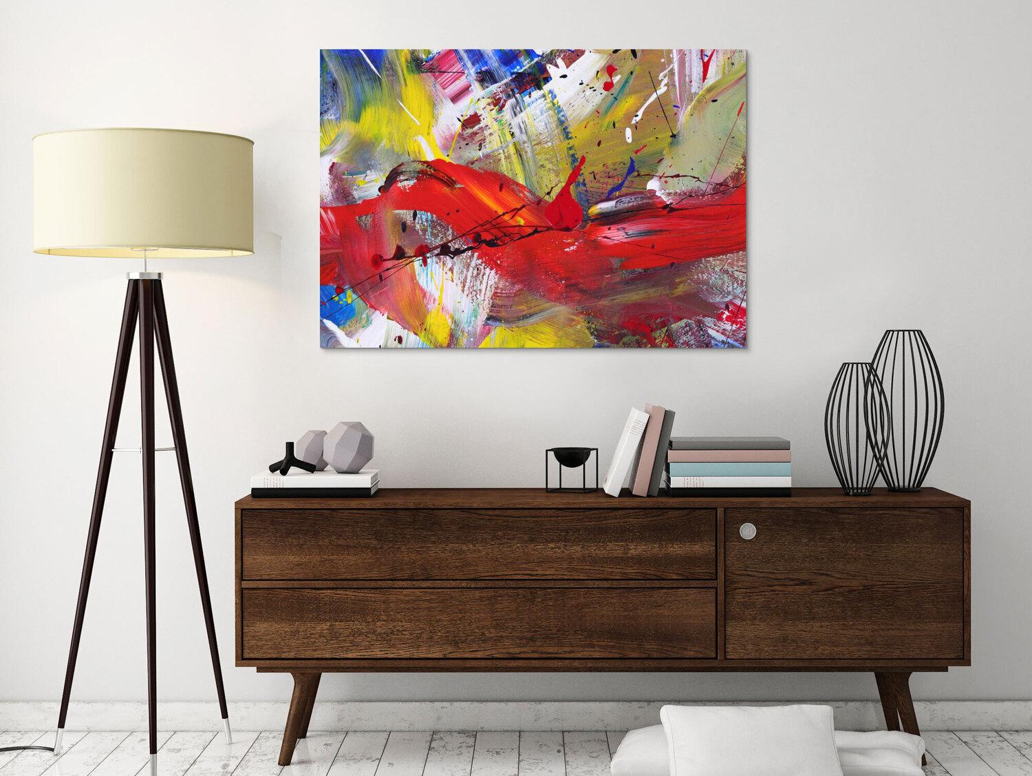 Ein hochwertiger Keilrahmen aus massivem Echtholz sorgt für eine dauerhaft straff gespannte Leinwand ohne sich zu verziehen. Mit den bereits montierten Keilen aus Hartholz kann die Leinwand bei Bedarf problemlos nachgespannt werden. Praktisch sind die Filzgleiter, die einen kleinen Abstand zur Wand erzeugen und somit Ihre Wand und das Kunstwerk vor Scheuern schonen.