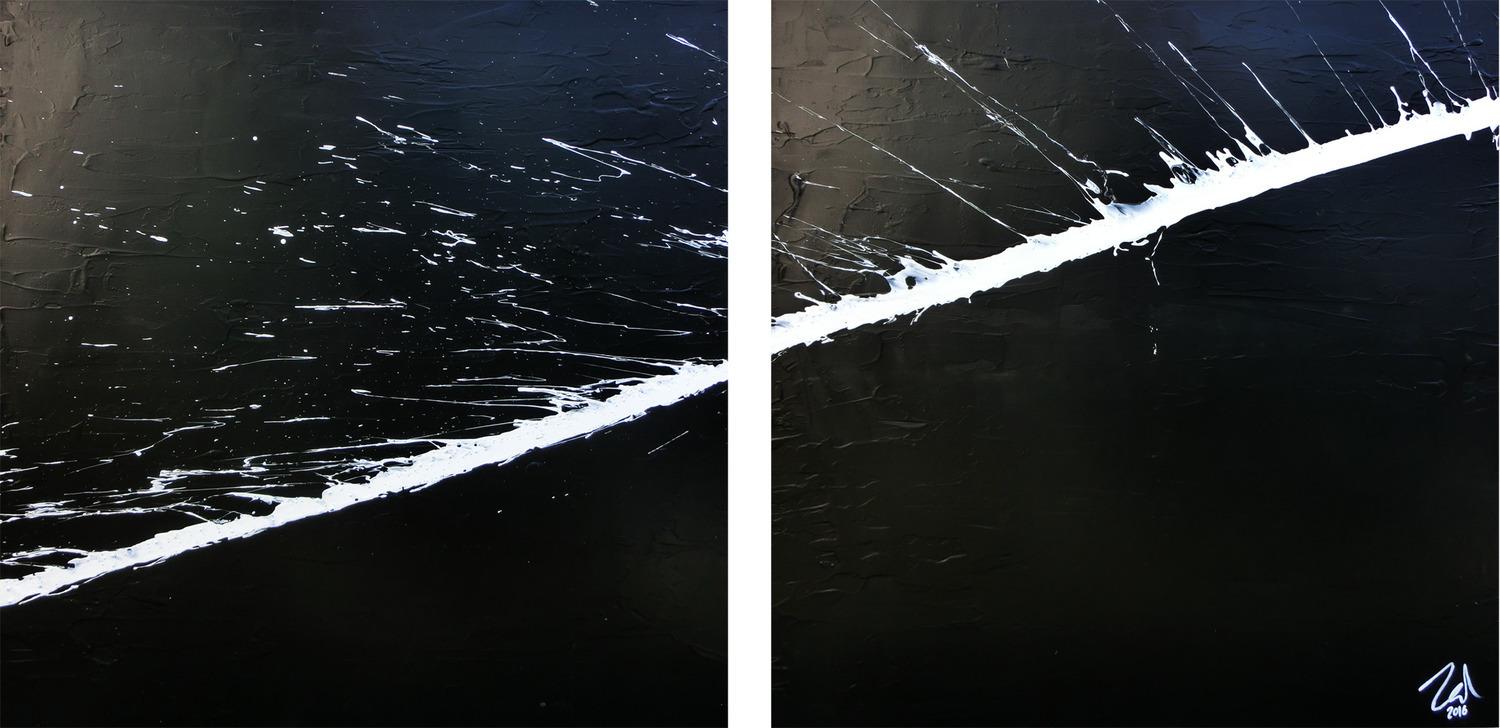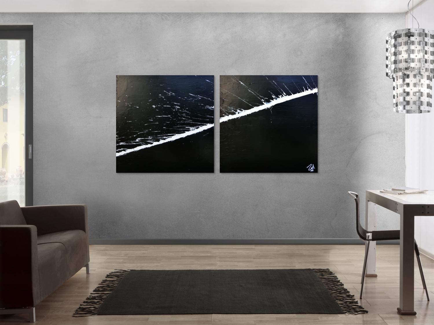 Minimalistisches abstraktes Acrylbild schwarz weiß zwei Teile