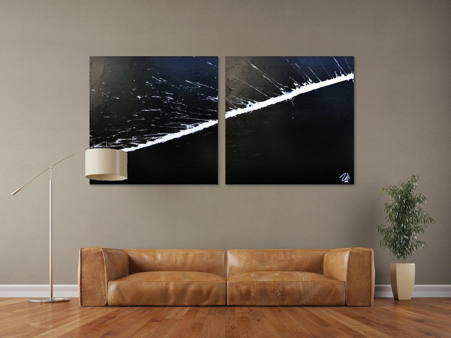 Abstraktes Gemälde auf Leinwand Minimalistisches abstraktes Acrylbild schwarz weiß zwei Teile in 100x200cm von Alex Zerr