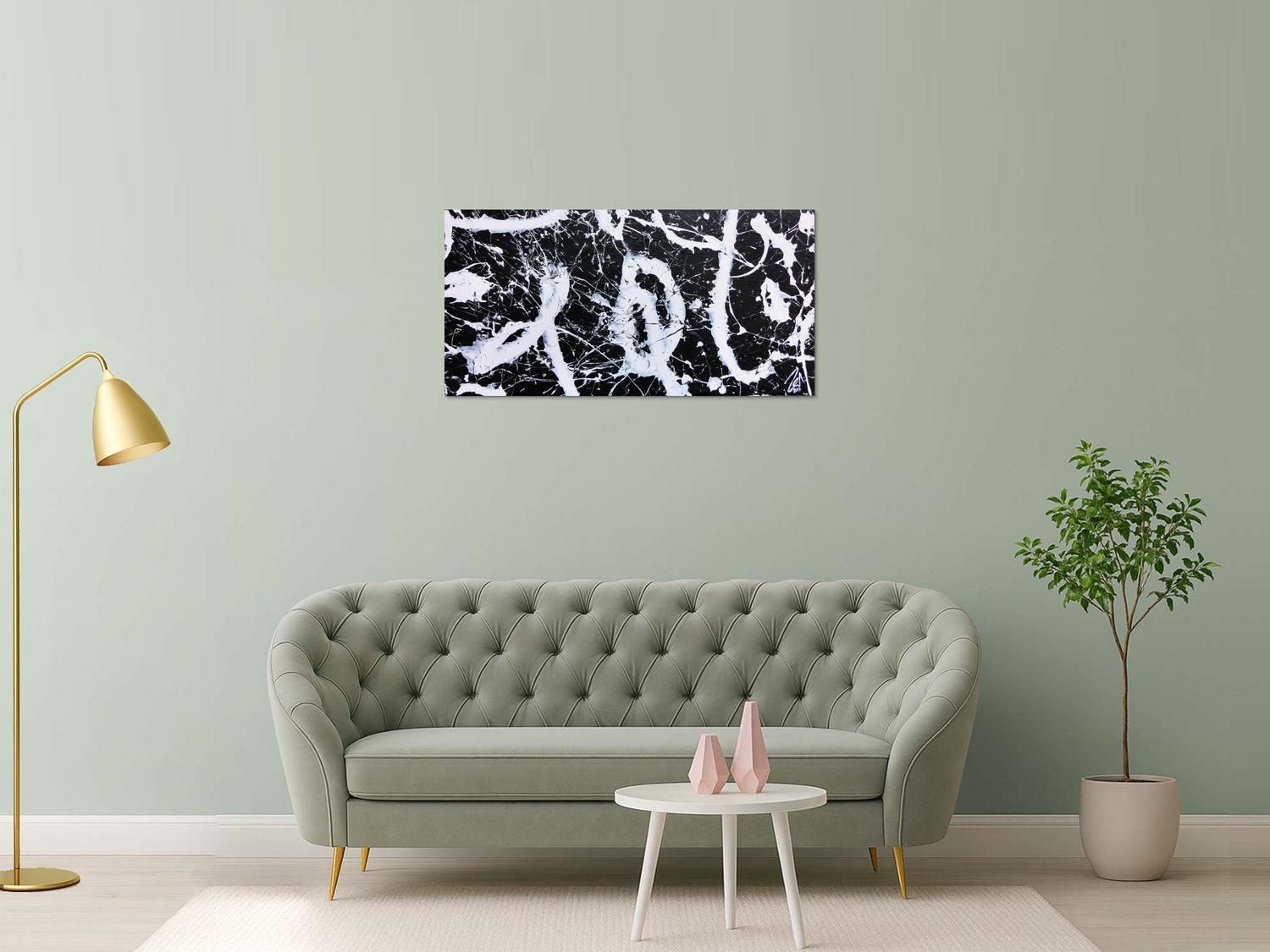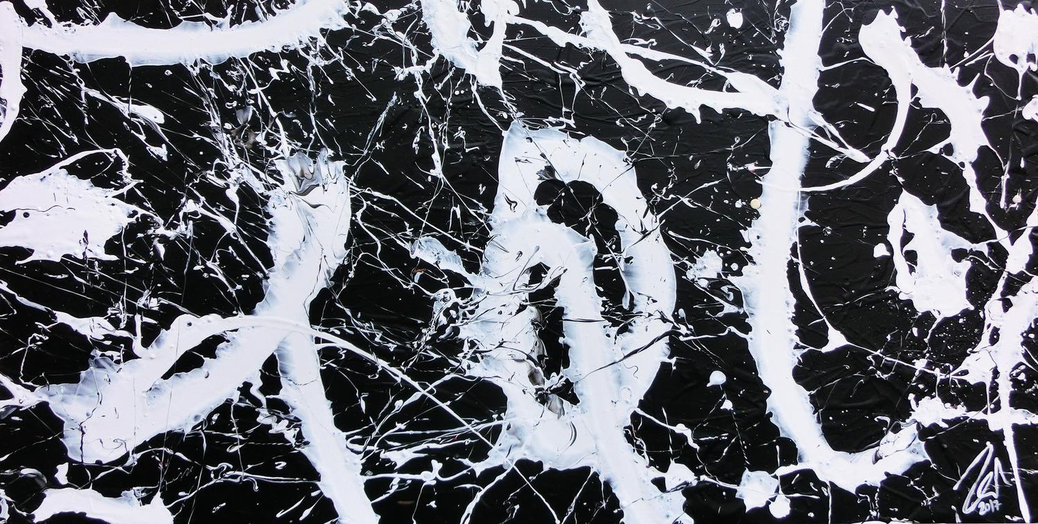 Abstraktes Gemälde auf Leinwand Minimalistisches abstraktes Bild schwarz weiß modern Spash Art Action Painting expressionistisch in 60x120cm von Alex Zerr
