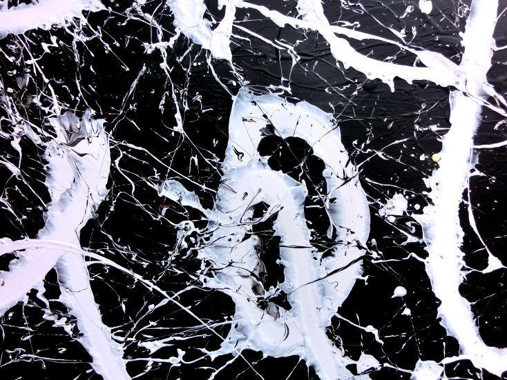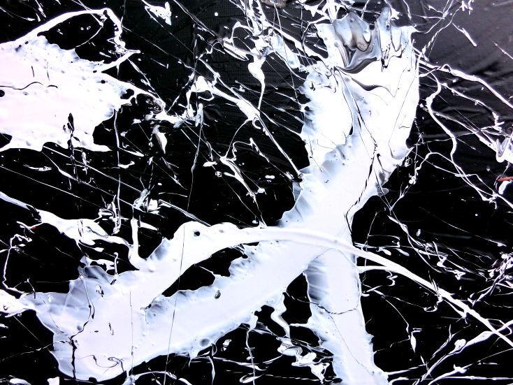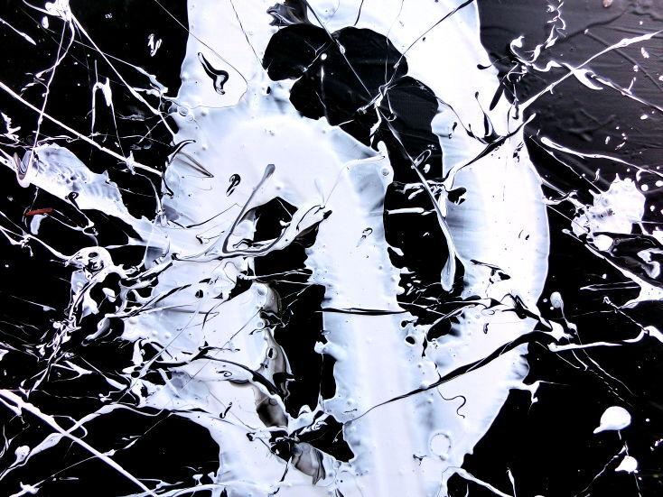 Minimalistisches abstraktes Bild schwarz weiß modern Spash Art Action Painting expressionistisch