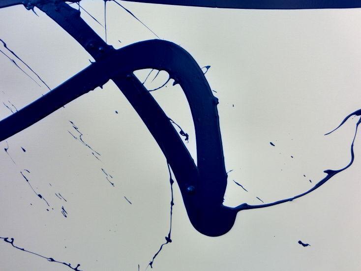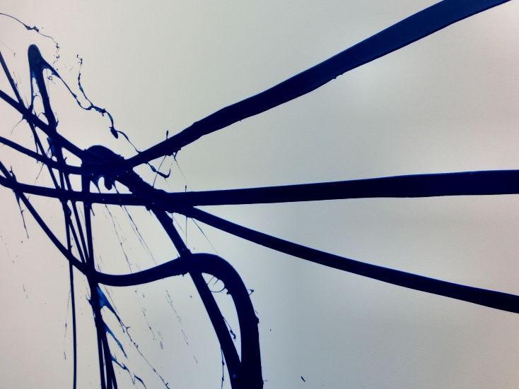 Minimalistisches abstraktes Gemälde in weiß und blau sehr modern