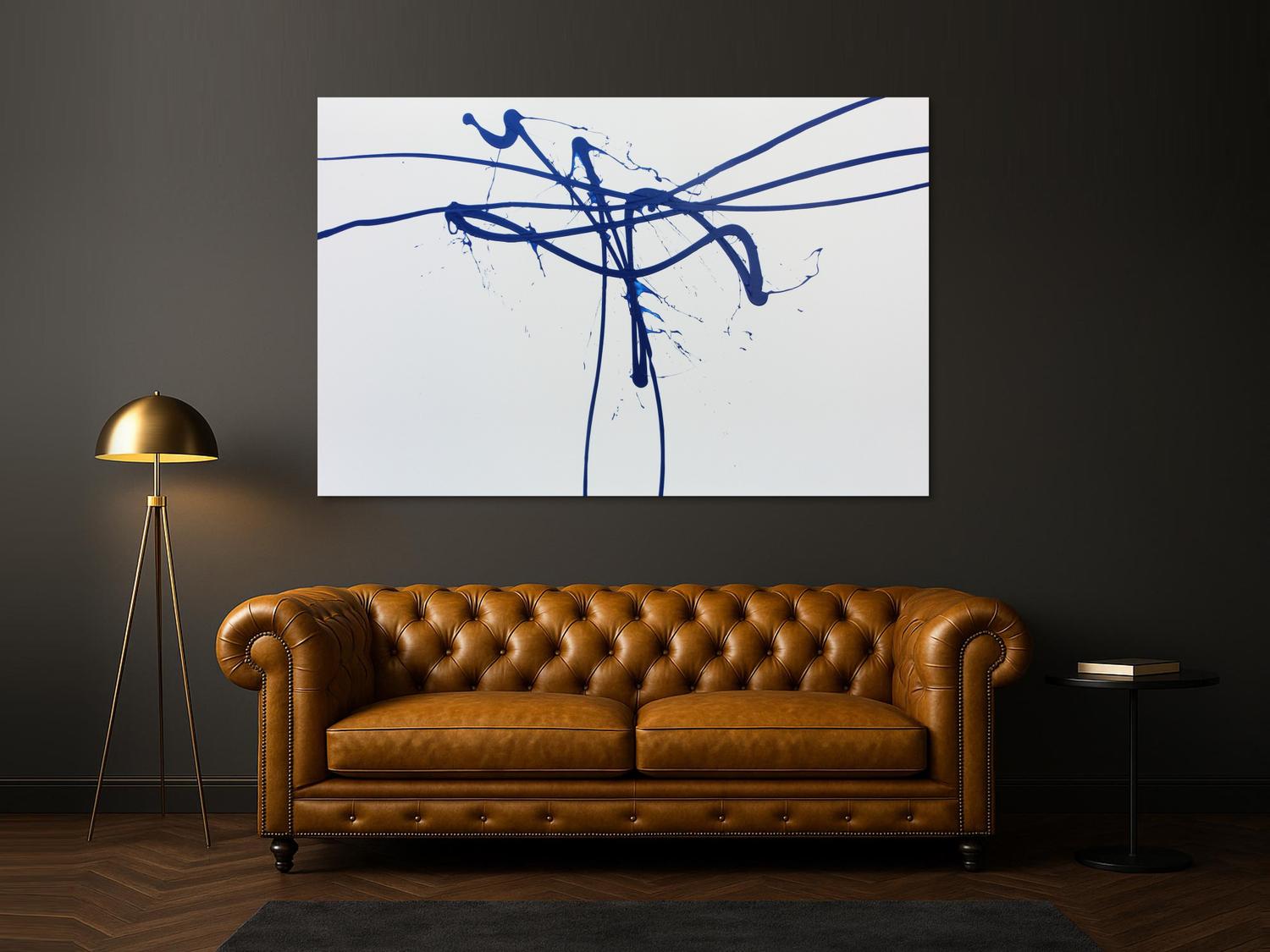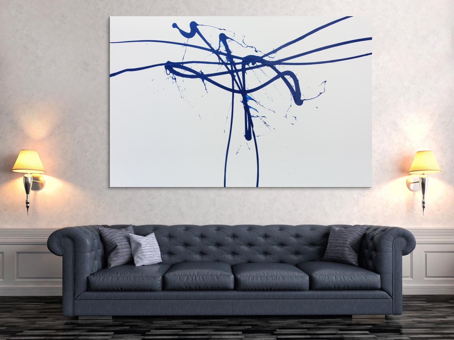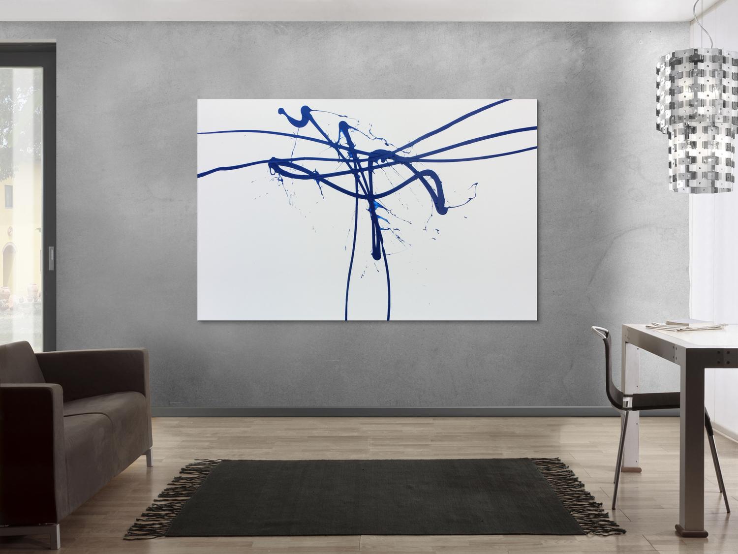 Abstraktes Gemälde auf Leinwand Minimalistisches abstraktes Gemälde in weiß und blau sehr modern in 130x200cm von Alex Zerr