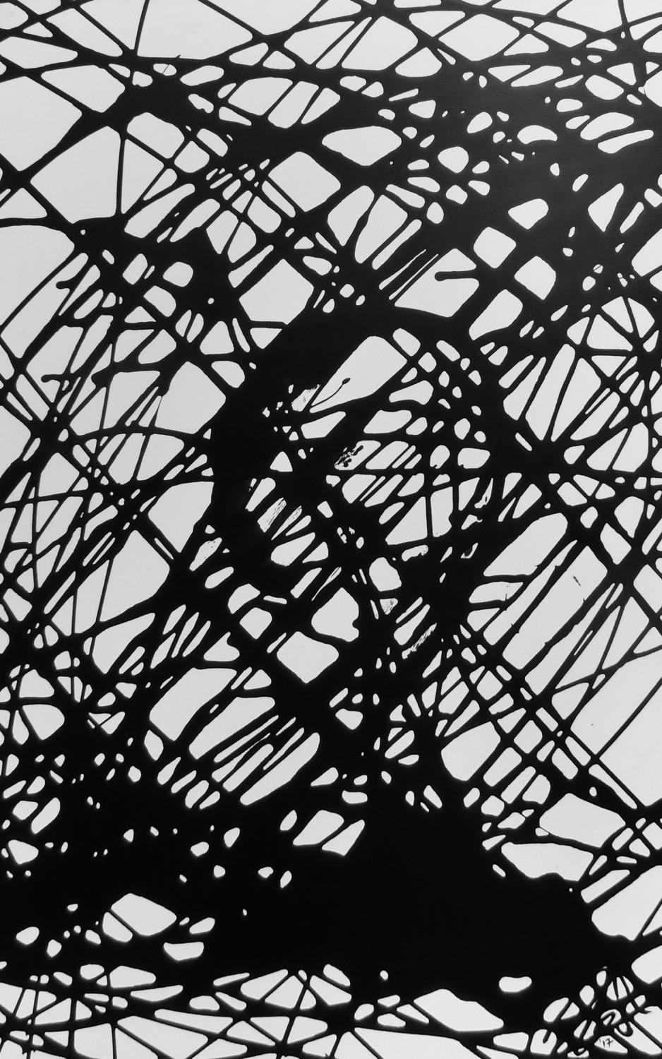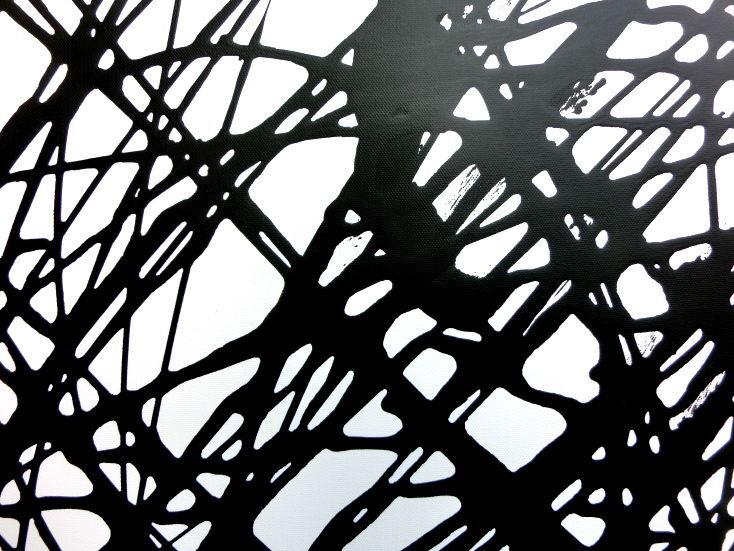 Minimalistisches abstraktes Gemälde schwarz weiß schwaze Streifen