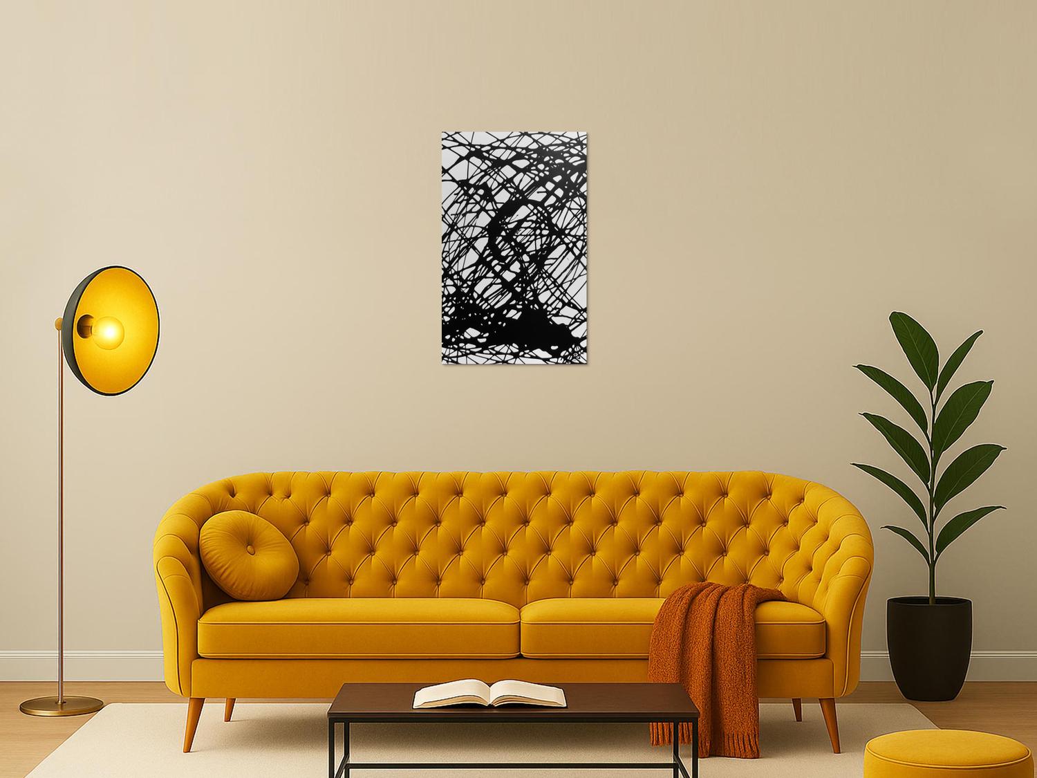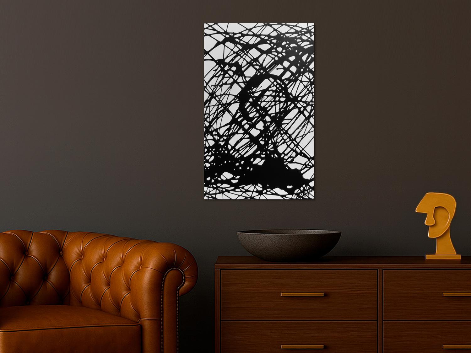 Abstraktes Gemälde auf Leinwand Minimalistisches abstraktes Gemälde schwarz weiß schwaze Streifen in 80x50cm von Alex Zerr