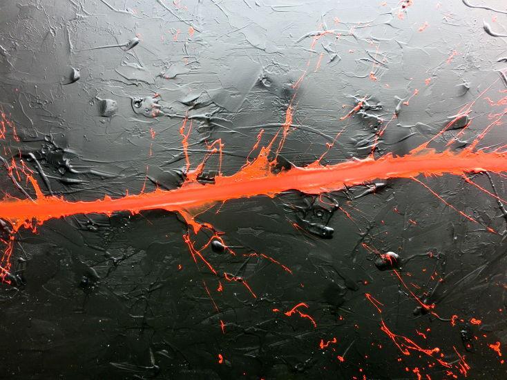 Dieses abstrakte Acrylbild ist ein handgemaltes Original vom Künstler Alex Zerr aus Bad Lisppringe und ist im Jahr 2016 in seinem Atelier entstanden. Das Bild hat eine Größe von 80x140cm und ist bereits auf einem hochwertigen und stabilem Rahmen aufgespannt. Dadurch kann das Bild nach der Lieferung direkt an die Wand gehängt werden und sofort in Ihrem Raum wirken. Alle Seiten des Gemäldes sind passend zum Motiv bemalt, so dass kein zusätzlicher Rahmen benötigt wird.