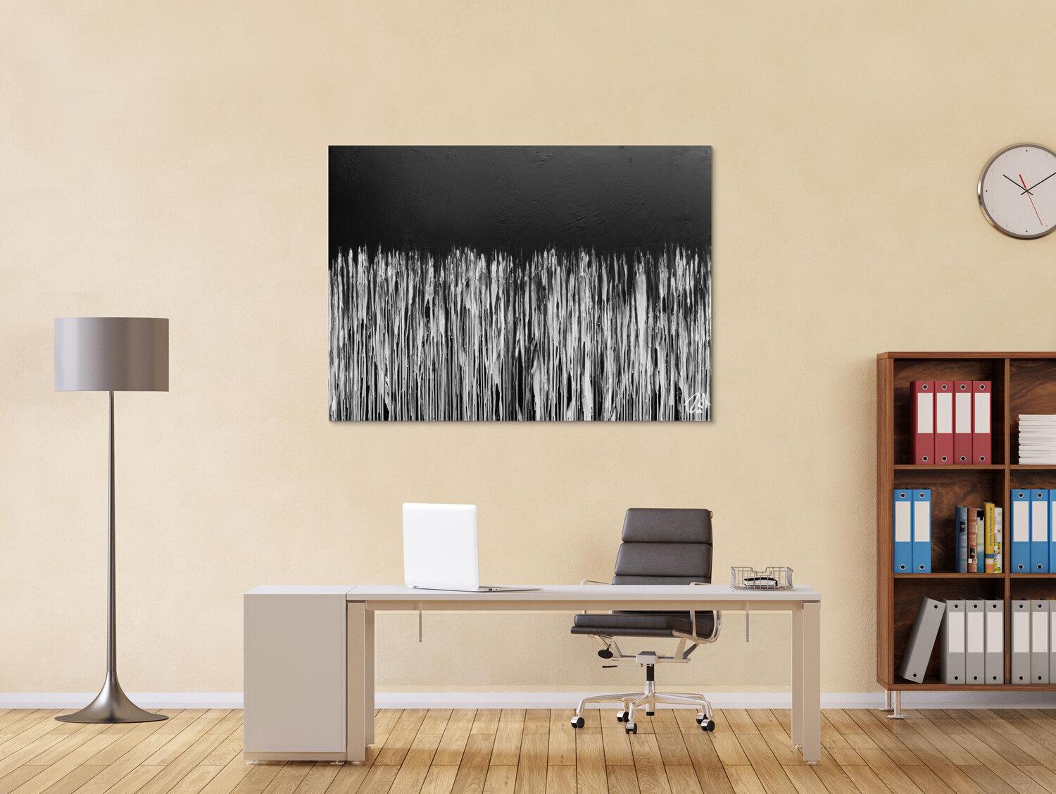 Minimalitisches abstraktes Acrylgemälde in schwarz weiß