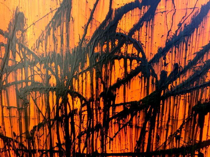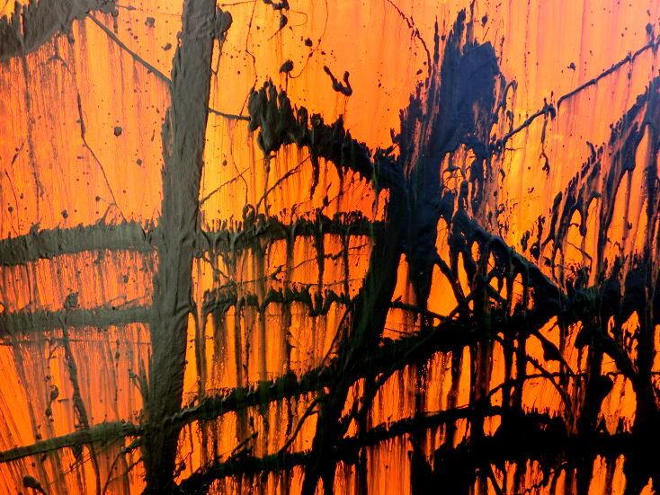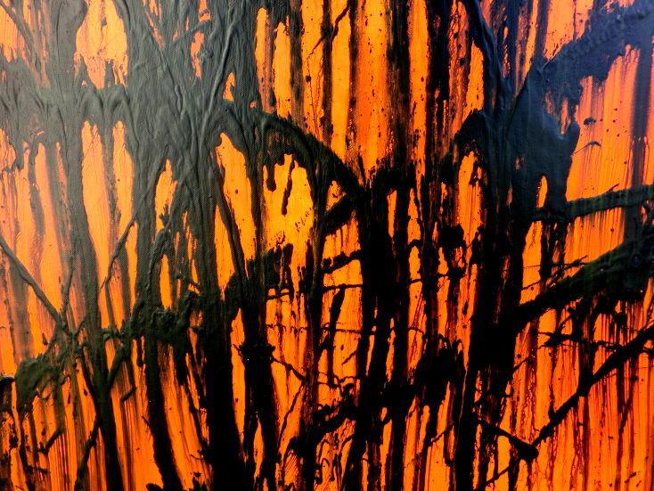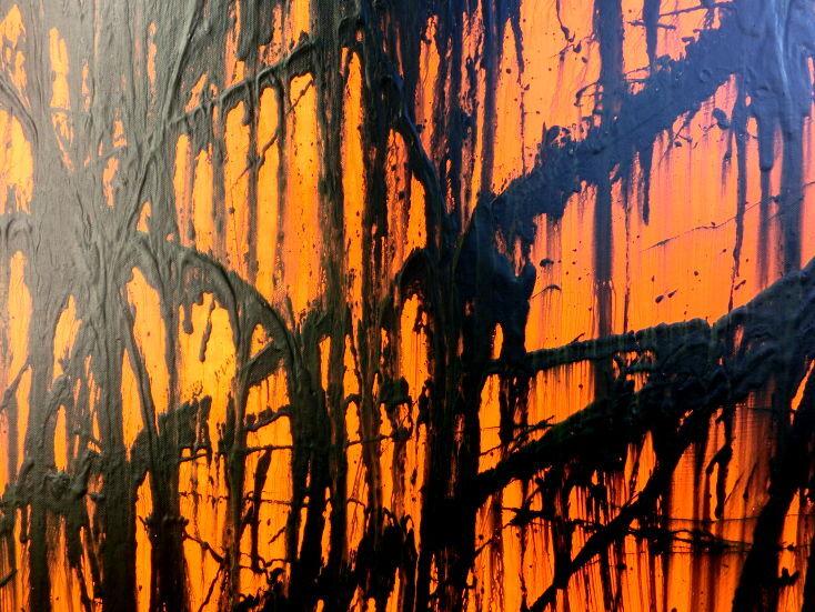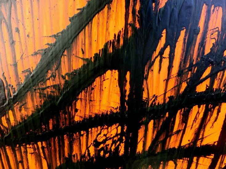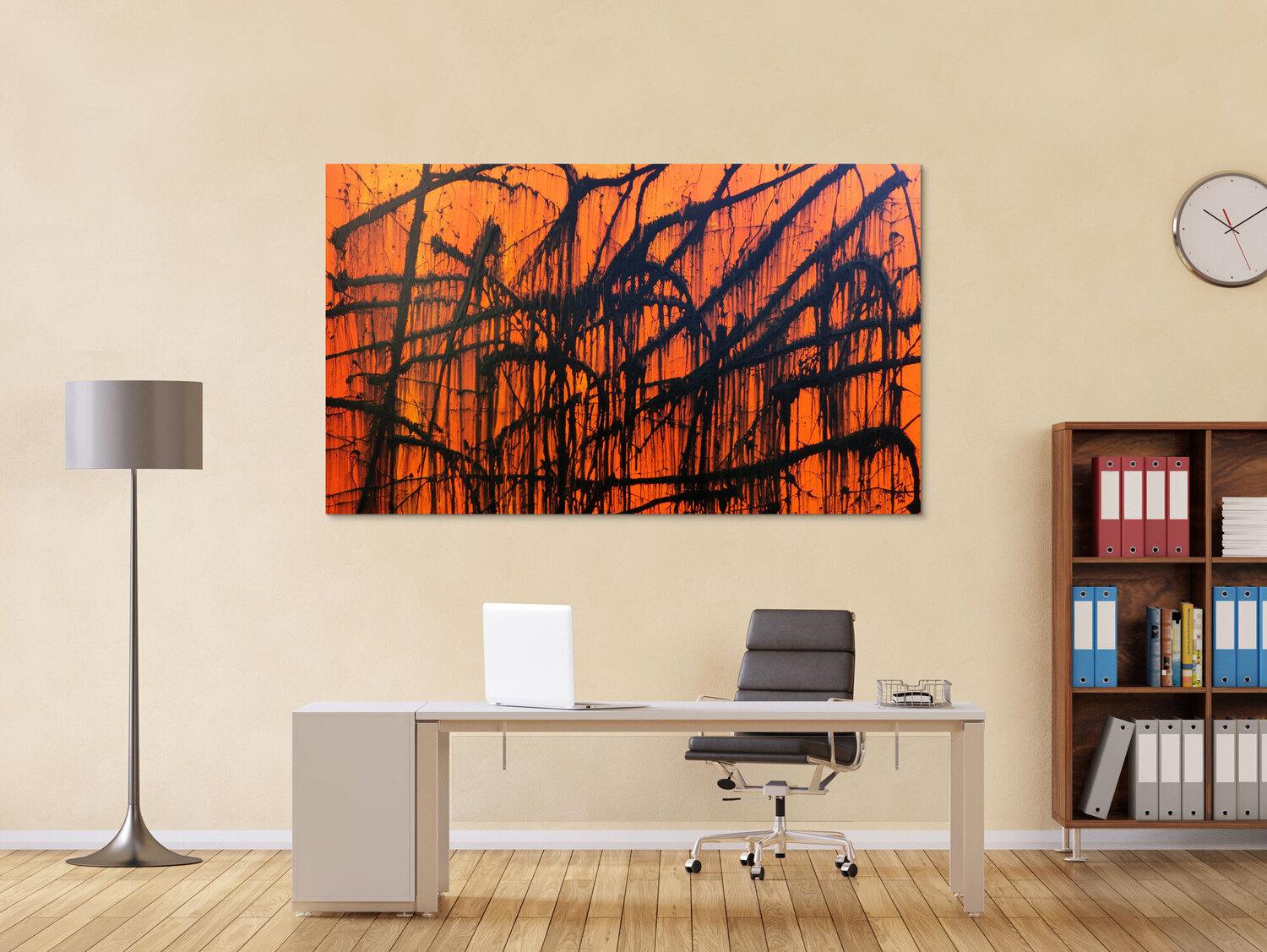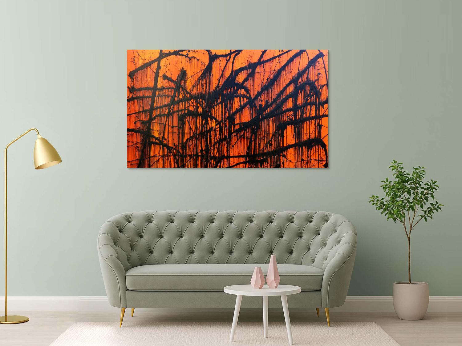 Abstraktes Gemälde auf Leinwand Modernes abstraktes Acrylbild in orange und schwarz in 100x180cm von Alex Zerr