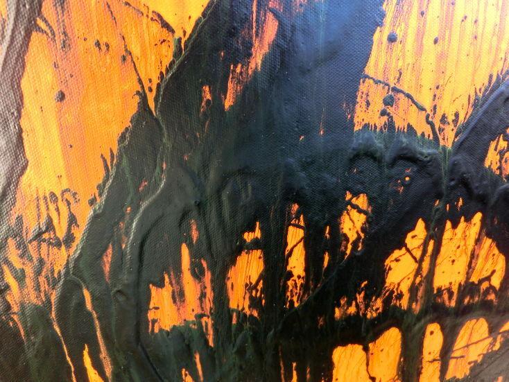 Dieses Werk ist wie alle meine Bilder: spontan entstanden, ganz intuitiv und ohne festes Konzept, und spiegelt oft meine momentane Stimmung wider wie auf der Leinwand festgehalten wurde.