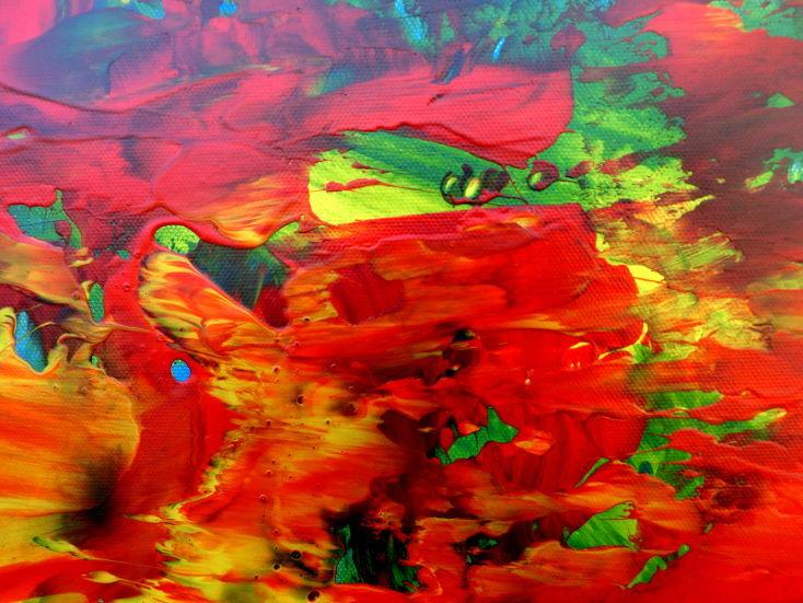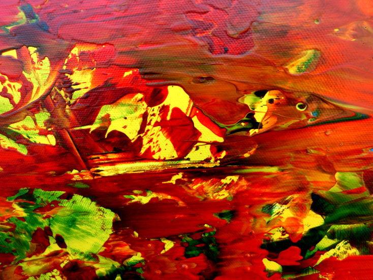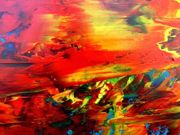 Dieses Werk ist wie alle meine Bilder: spontan entstanden, ganz intuitiv und ohne festes Konzept, und spiegelt oft meine momentane Stimmung wider wie auf der Leinwand festgehalten wurde.