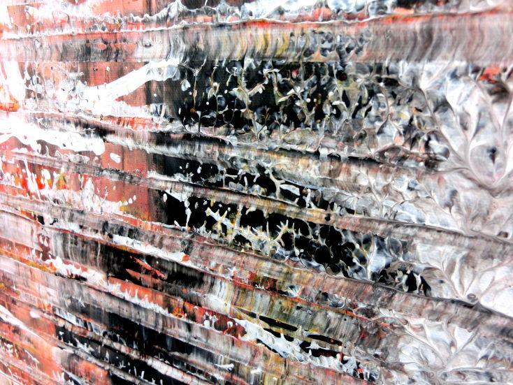 Dieses abstrakte Acrylbild ist ein handgemaltes Original vom Künstler Alex Zerr aus Bad Lisppringe und ist im Jahr 2015 in seinem Atelier entstanden. Das Bild hat eine Größe von 50x150cm und ist bereits auf einem hochwertigen und stabilem Rahmen aufgespannt. Dadurch kann das Bild nach der Lieferung direkt an die Wand gehängt werden und sofort in Ihrem Raum wirken. Alle Seiten des Gemäldes sind passend zum Motiv bemalt, so dass kein zusätzlicher Rahmen benötigt wird.