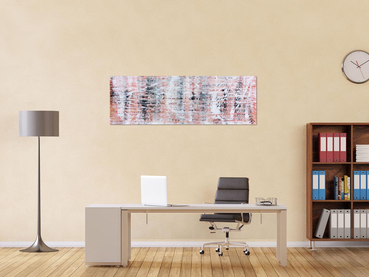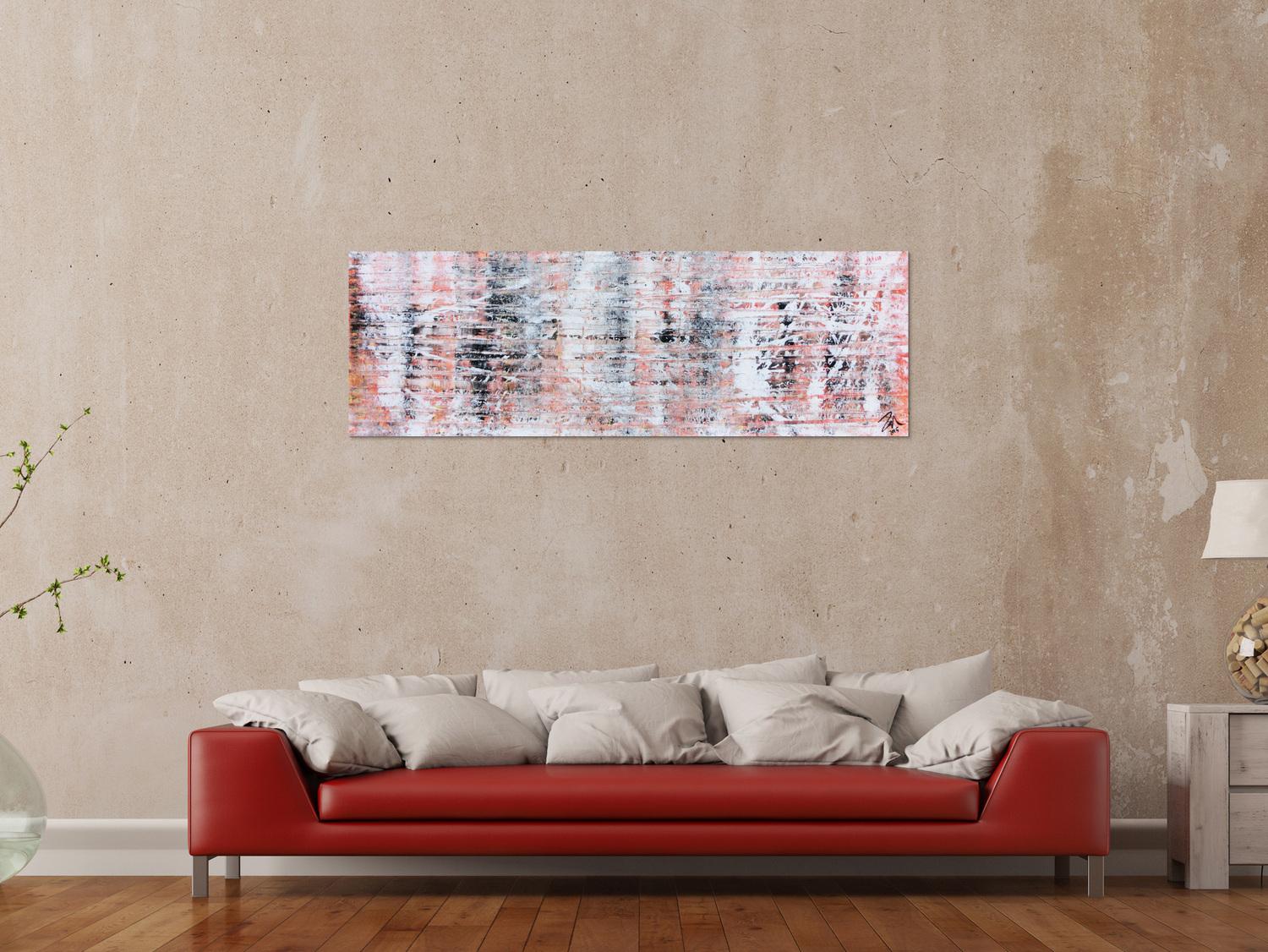 Abstraktes Gemälde auf Leinwand Modernes abstraktes Acrylgemälde in hellen orange Tönen in 50x150cm von Alex Zerr