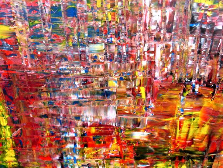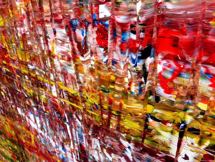 Dieses abstrakte Acrylbild ist ein handgemaltes Original vom Künstler Alex Zerr aus Bad Lisppringe und ist im Jahr 2015 in seinem Atelier entstanden. Das Bild hat eine Größe von 160x180cm und ist bereits auf einem hochwertigen und stabilem Rahmen aufgespannt. Dadurch kann das Bild nach der Lieferung direkt an die Wand gehängt werden und sofort in Ihrem Raum wirken. Alle Seiten des Gemäldes sind passend zum Motiv bemalt, so dass kein zusätzlicher Rahmen benötigt wird.