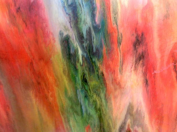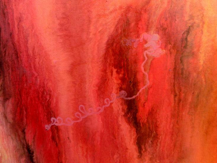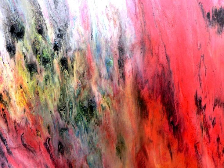Dieses Werk ist wie alle meine Bilder: spontan entstanden, ganz intuitiv und ohne festes Konzept, und spiegelt oft meine momentane Stimmung wider wie auf der Leinwand festgehalten wurde.
