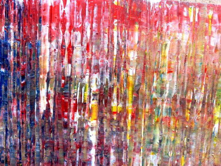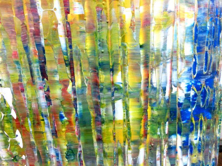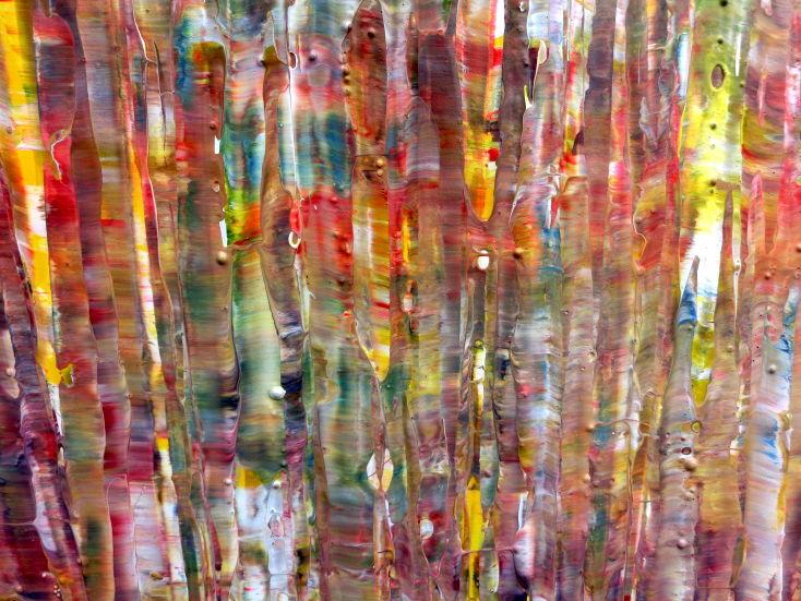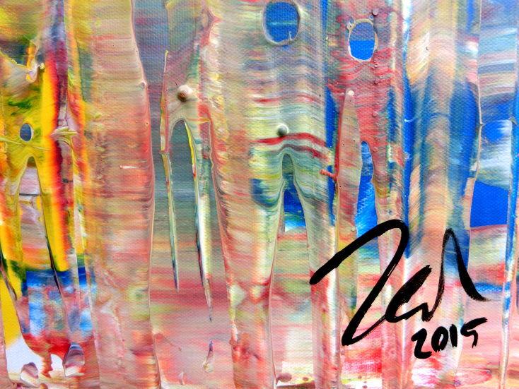 Dieses abstrakte Acrylbild ist ein handgemaltes Original vom Künstler Alex Zerr aus Bad Lisppringe und ist im Jahr 2015 in seinem Atelier entstanden. Das Bild hat eine Größe von 80x200cm und ist bereits auf einem hochwertigen und stabilem Rahmen aufgespannt. Dadurch kann das Bild nach der Lieferung direkt an die Wand gehängt werden und sofort in Ihrem Raum wirken. Alle Seiten des Gemäldes sind passend zum Motiv bemalt, so dass kein zusätzlicher Rahmen benötigt wird.