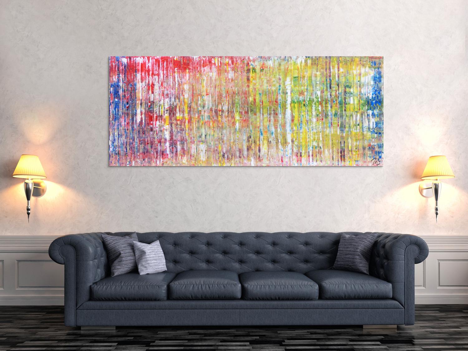 Abstraktes Gemälde auf Leinwand Modernes abstraktes Acrylgemälde mit vielen Farben in Spachteltechnik in 80x200cm von Alex Zerr