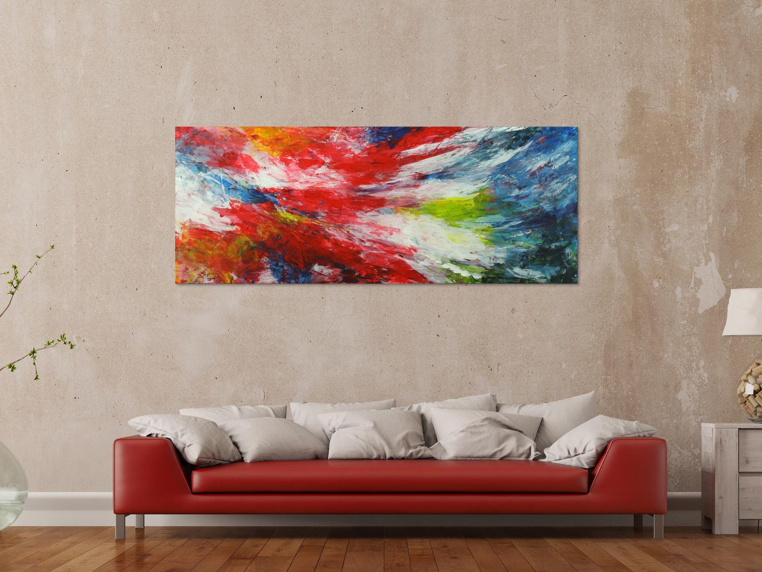 Abstraktes Gemälde auf Leinwand Modernes abstraktes Bild auf Leinwand handgemalt bunte Farben Spachteltechnik in 70x180cm von Alex Zerr