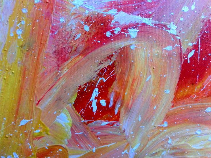 Dieses Werk ist wie alle meine Bilder: spontan entstanden, ganz intuitiv und ohne festes Konzept, und spiegelt oft meine momentane Stimmung wider wie auf der Leinwand festgehalten wurde.