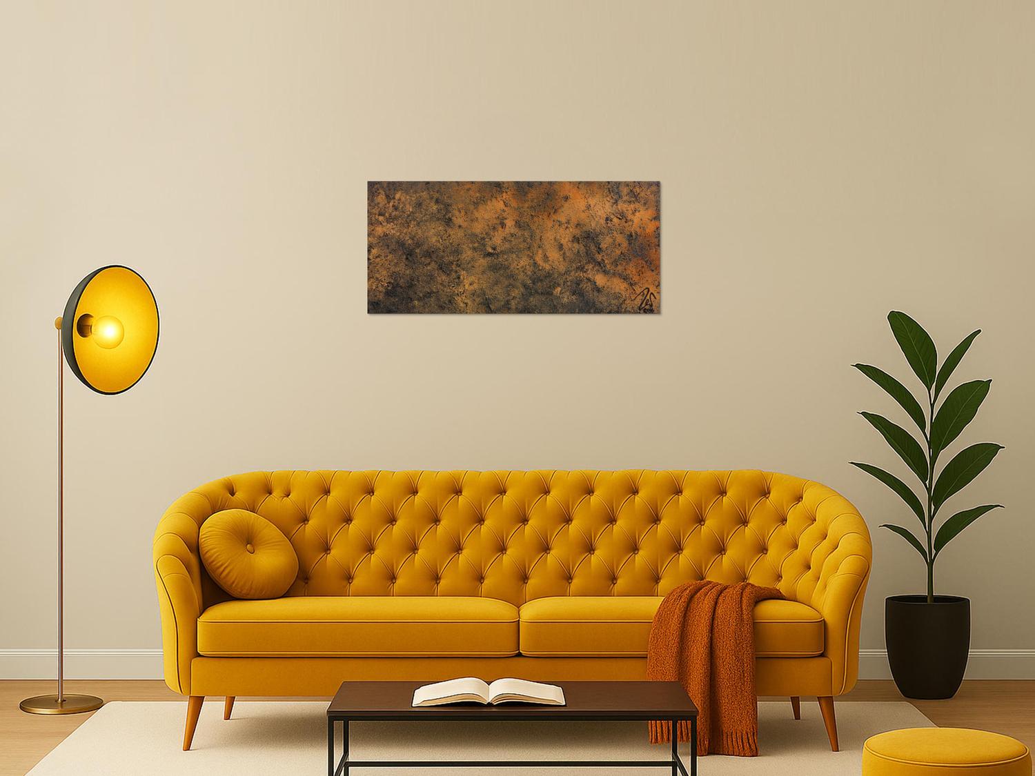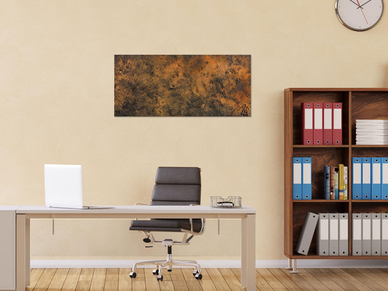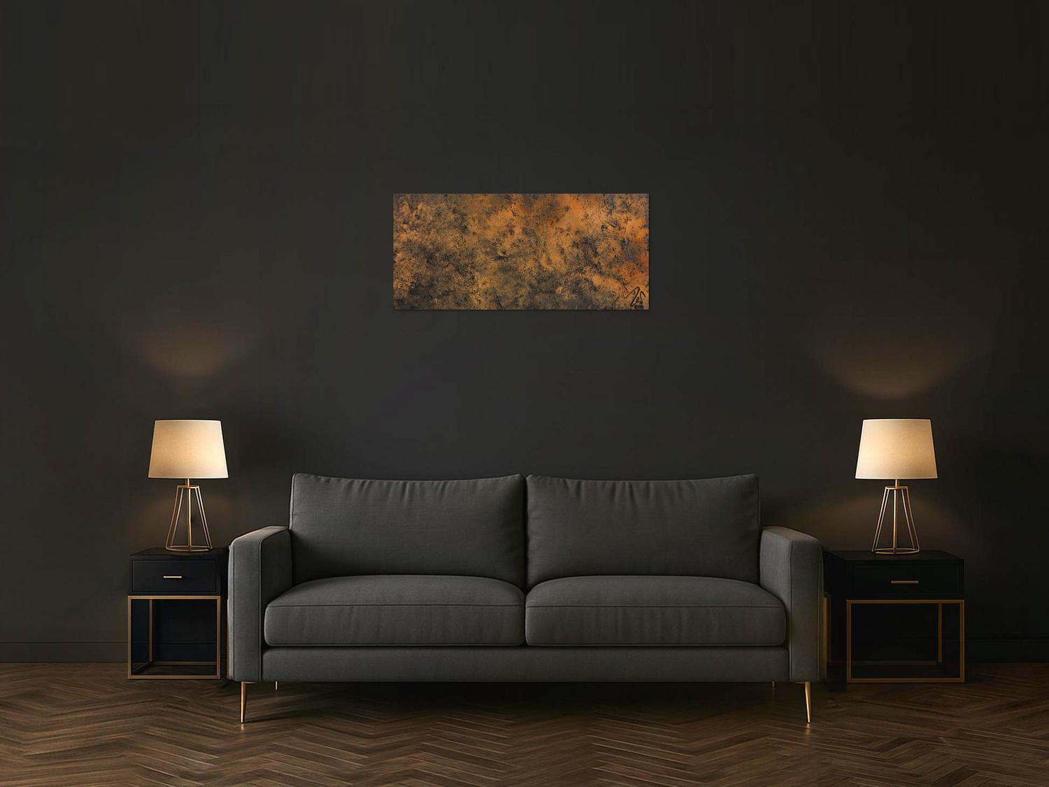 Abstraktes Gemälde auf Leinwand Modernes abstraktes Gemälde aus echtem Rost schlicht minimalistisch in 45x100cm von Alex Zerr