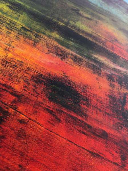 Bei jedem Gemälde ist der Rand bereits farblich passend zum Hauptmotiv bemalt so dass die Ränder einen fließenden Übergang bilden.