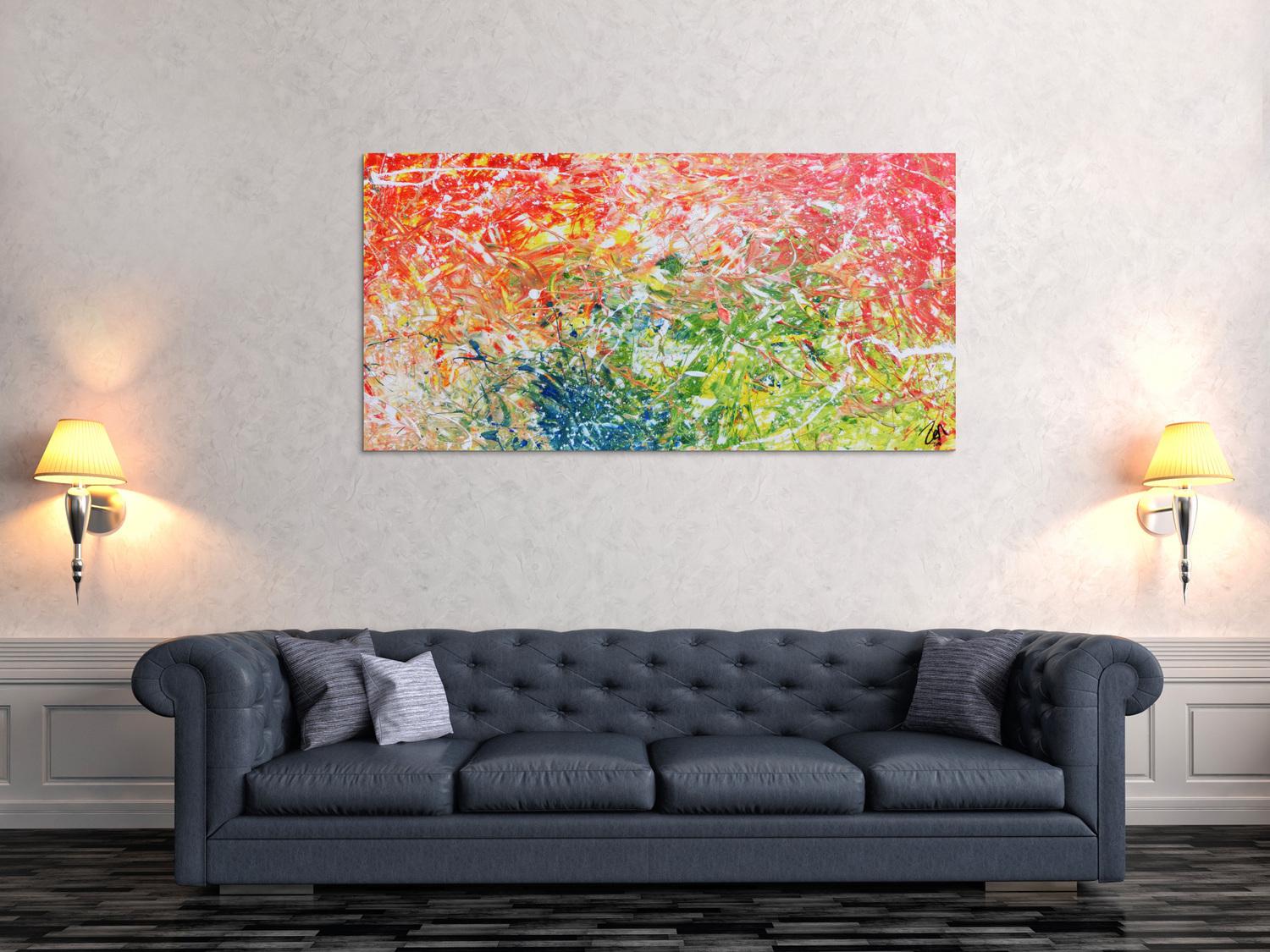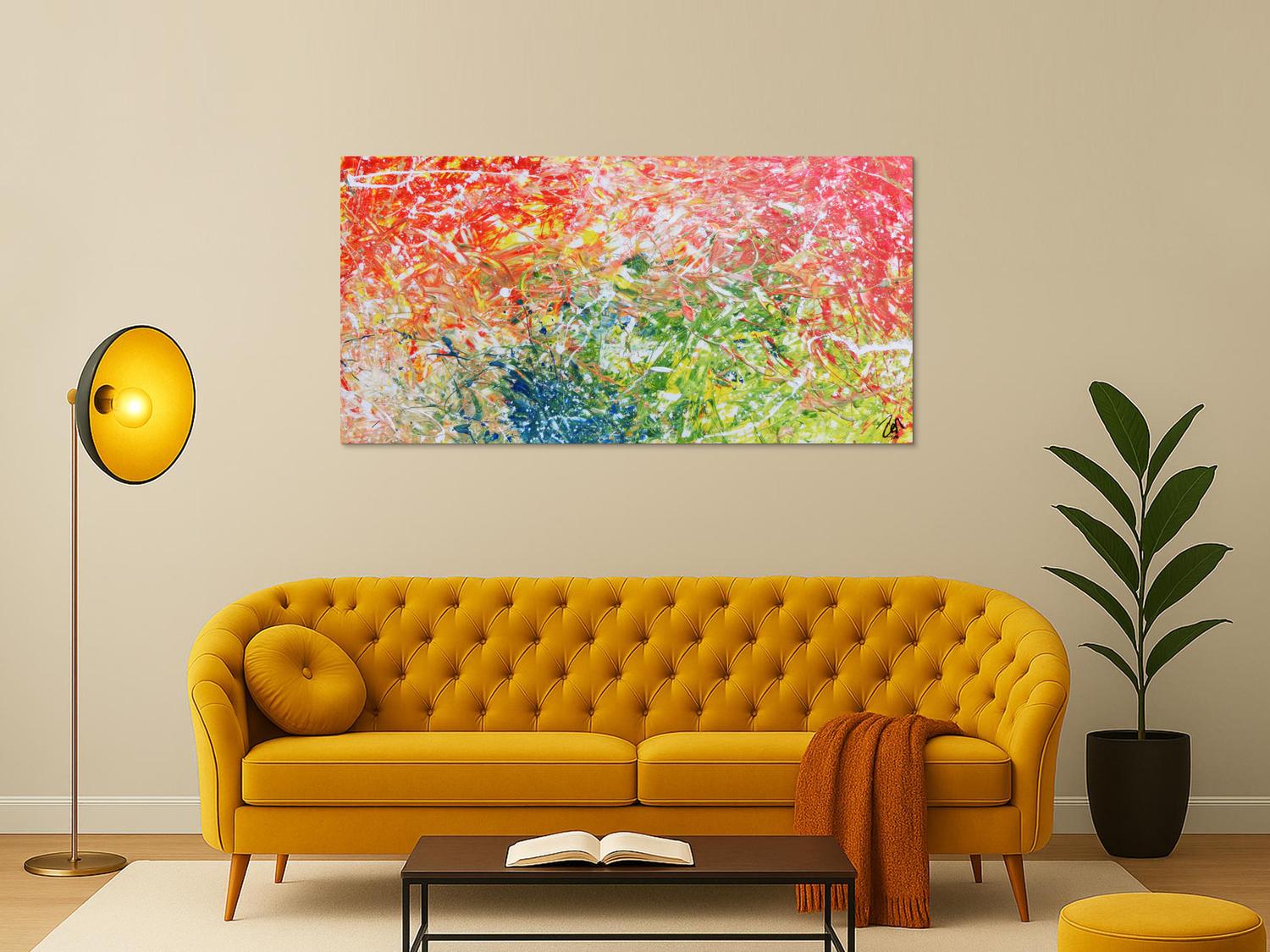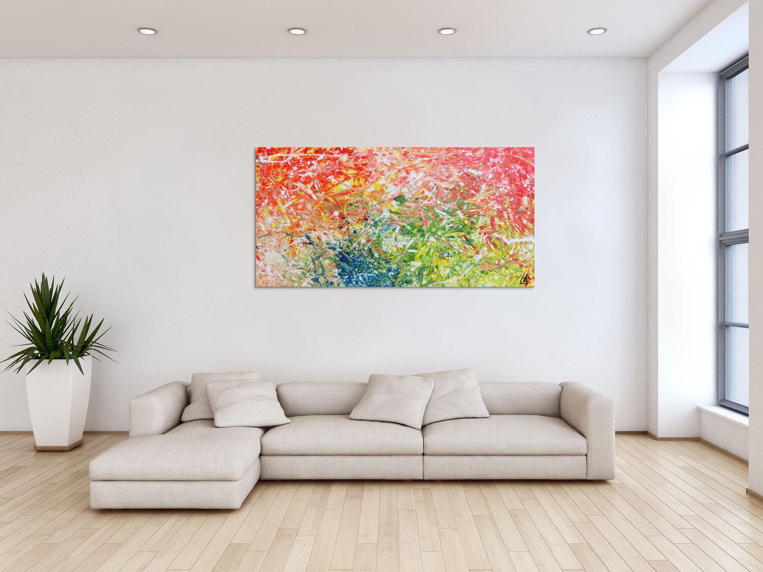 Abstraktes Gemälde auf Leinwand Modernes abstraktes Gemälde mit hellen bunten Farben in 80x160cm von Alex Zerr