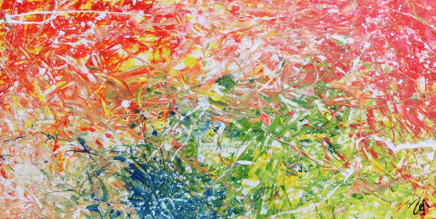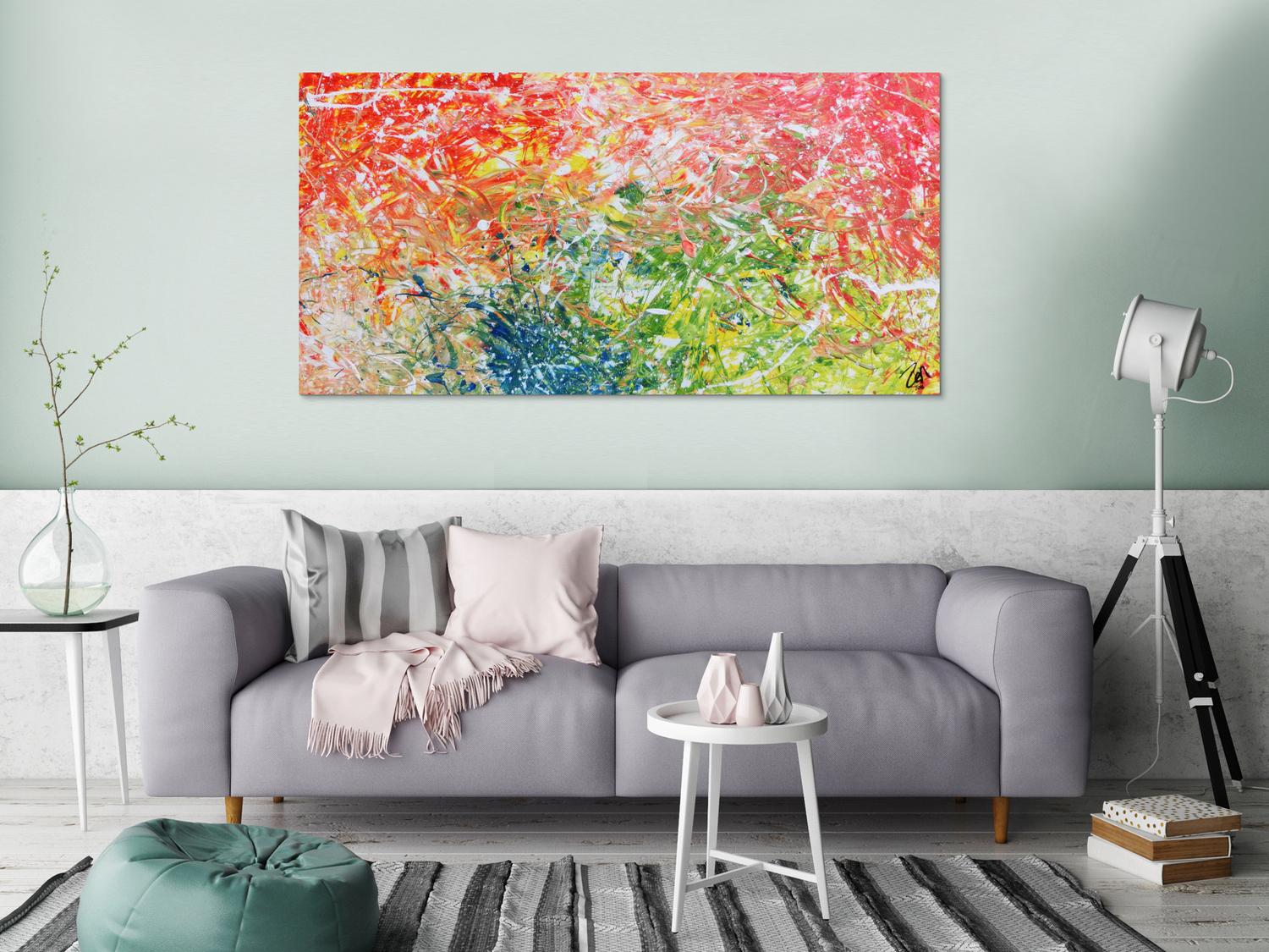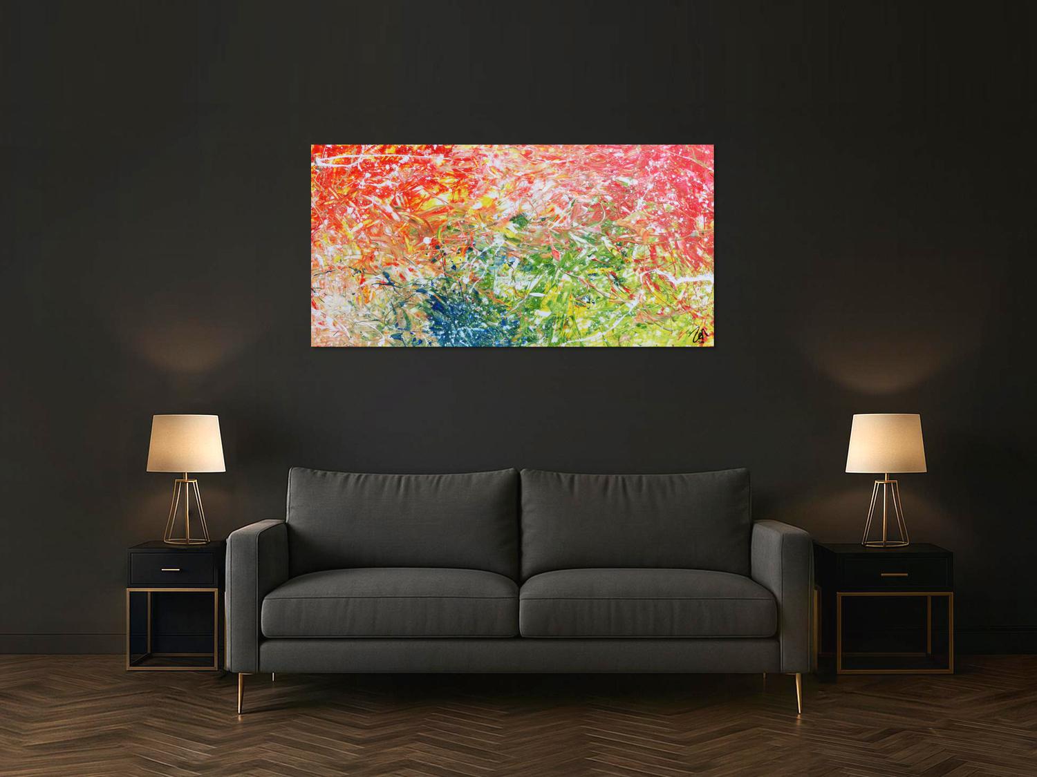 Abstraktes Gemälde auf Leinwand Modernes abstraktes Gemälde mit hellen bunten Farben in 80x160cm von Alex Zerr