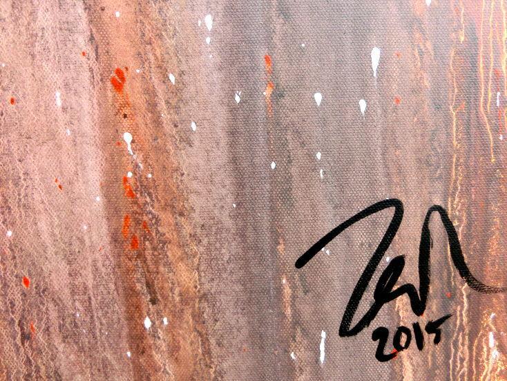 Dieses abstrakte Acrylbild ist ein handgemaltes Original vom Künstler Alex Zerr aus Bad Lisppringe und ist im Jahr 2015 in seinem Atelier entstanden. Das Bild hat eine Größe von 100x150cm und ist bereits auf einem hochwertigen und stabilem Rahmen aufgespannt. Dadurch kann das Bild nach der Lieferung direkt an die Wand gehängt werden und sofort in Ihrem Raum wirken. Alle Seiten des Gemäldes sind passend zum Motiv bemalt, so dass kein zusätzlicher Rahmen benötigt wird.