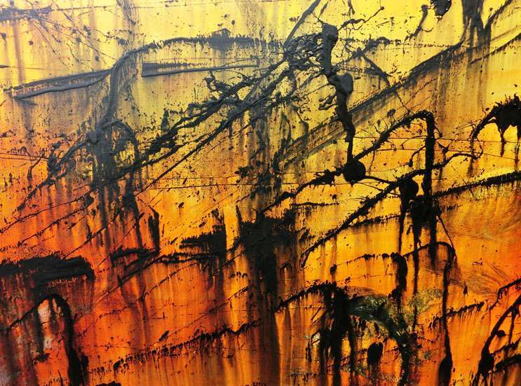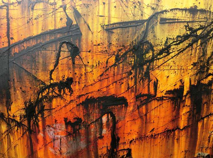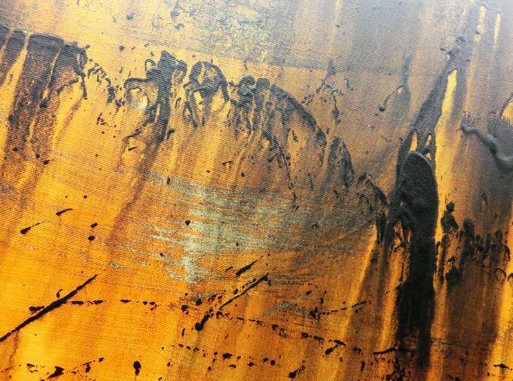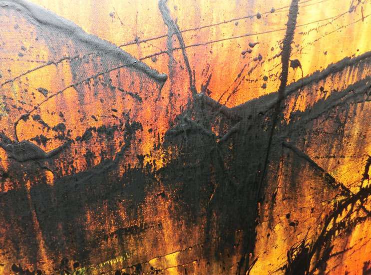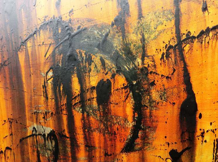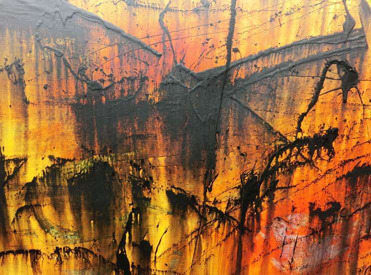 Dieses abstrakte Acrylbild ist ein handgemaltes Original vom Künstler Alex Zerr aus Bad Lisppringe und ist im Jahr 2014 in seinem Atelier entstanden. Das Bild hat eine Größe von 100x200cm und ist bereits auf einem hochwertigen und stabilem Rahmen aufgespannt. Dadurch kann das Bild nach der Lieferung direkt an die Wand gehängt werden und sofort in Ihrem Raum wirken. Alle Seiten des Gemäldes sind passend zum Motiv bemalt, so dass kein zusätzlicher Rahmen benötigt wird.