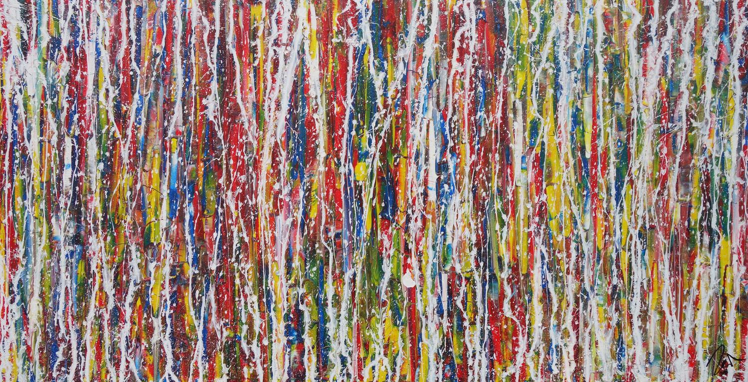 Abstraktes Gemälde auf Leinwand Modernes Acrylbild abstrakt Action Painting zeitgenössisch expressionistisch in 90x180cm von Alex Zerr