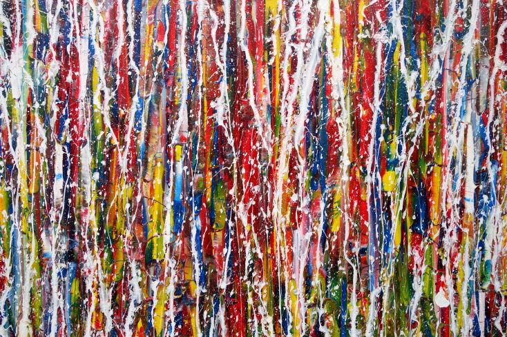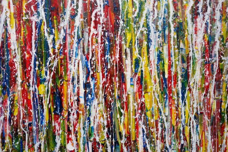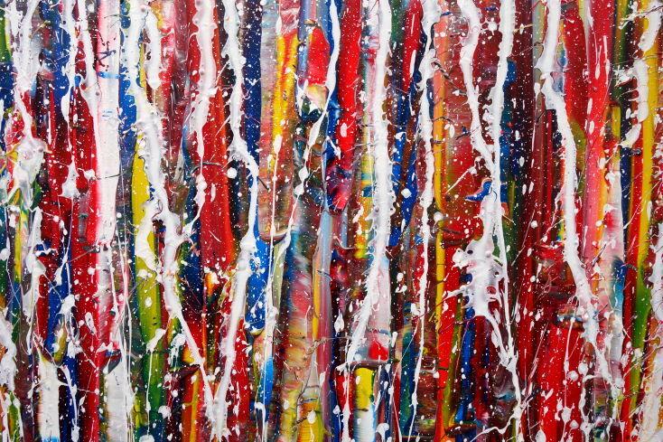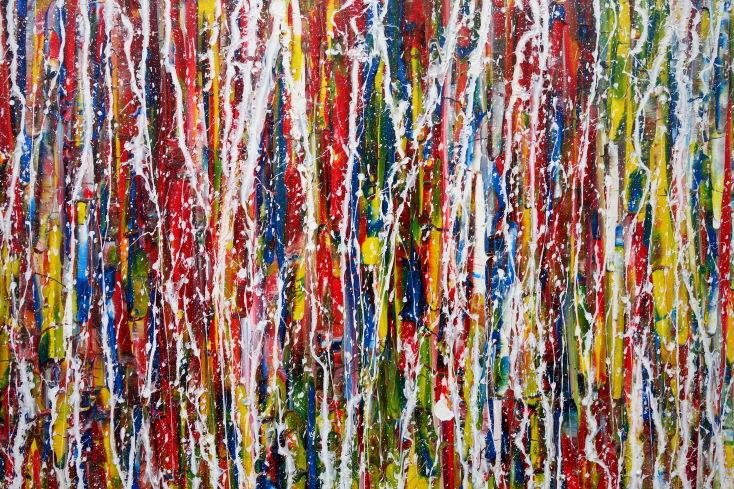Hallo, ich bin Alex Zerr, der Künstler hinter diesem Gemälde. In meinem Atelier in Bad Lippspringe erschaffe ich abstrakte Acrylbilder, überwiegend im Action-Painting-Stil. Meißtens mit Acrylfarben und auf sehr großen XXL-Leinwänden, die meinem kreativen Prozess besonders viel Freiheit erlauben und oft zu beeindruckenden Gemälden führen.