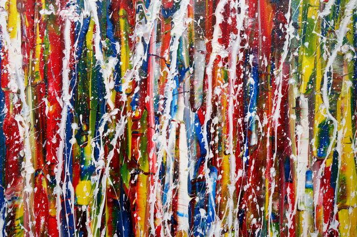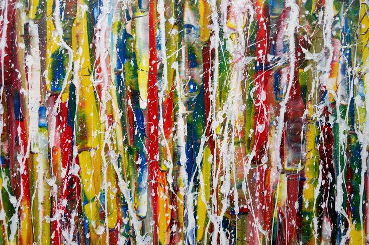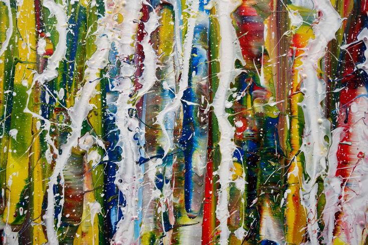 Dieses abstrakte Acrylbild ist ein handgemaltes Original vom Künstler Alex Zerr aus Bad Lisppringe und ist im Jahr 2018 in seinem Atelier entstanden. Das Bild hat eine Größe von 90x180cm und ist bereits auf einem hochwertigen und stabilem Rahmen aufgespannt. Dadurch kann das Bild nach der Lieferung direkt an die Wand gehängt werden und sofort in Ihrem Raum wirken. Alle Seiten des Gemäldes sind passend zum Motiv bemalt, so dass kein zusätzlicher Rahmen benötigt wird.