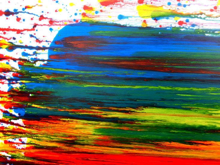 Dieses abstrakte Acrylbild ist ein handgemaltes Original vom Künstler Alex Zerr aus Bad Lisppringe und ist im Jahr 2016 in seinem Atelier entstanden. Das Bild hat eine Größe von 90x180cm und ist bereits auf einem hochwertigen und stabilem Rahmen aufgespannt. Dadurch kann das Bild nach der Lieferung direkt an die Wand gehängt werden und sofort in Ihrem Raum wirken. Alle Seiten des Gemäldes sind passend zum Motiv bemalt, so dass kein zusätzlicher Rahmen benötigt wird.
