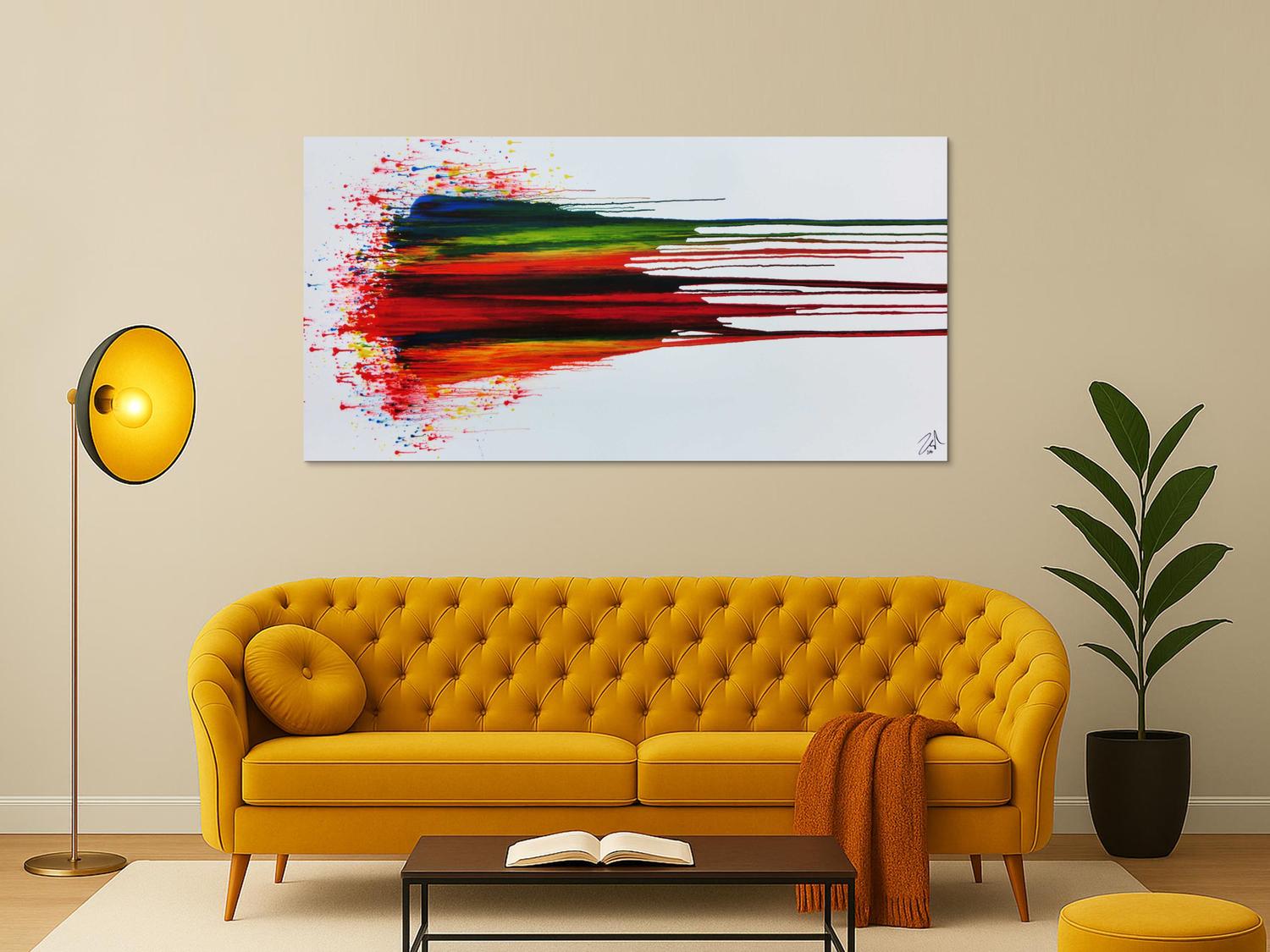 Abstraktes Gemälde auf Leinwand Modernes Acrylbild abstrakt bunt mit weißem Hintergrund in 90x180cm von Alex Zerr
