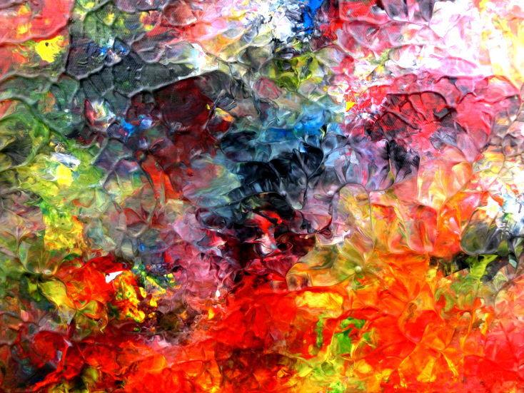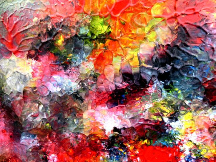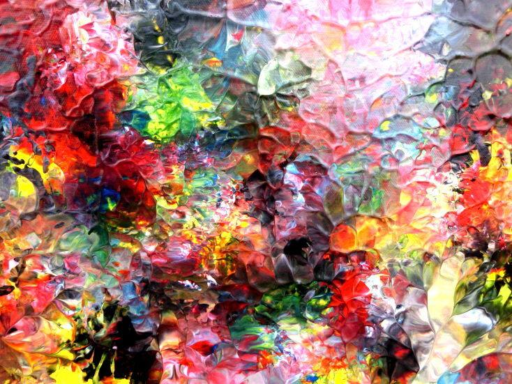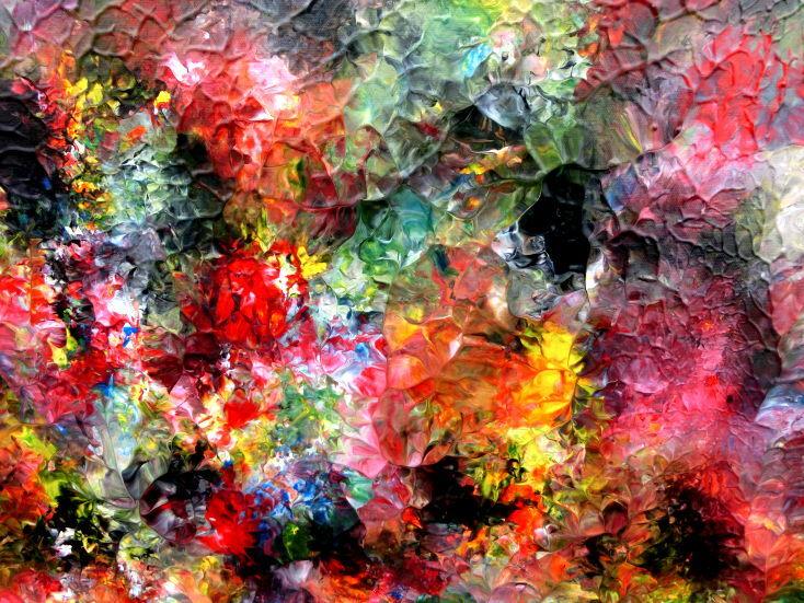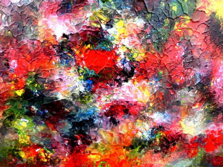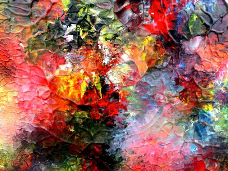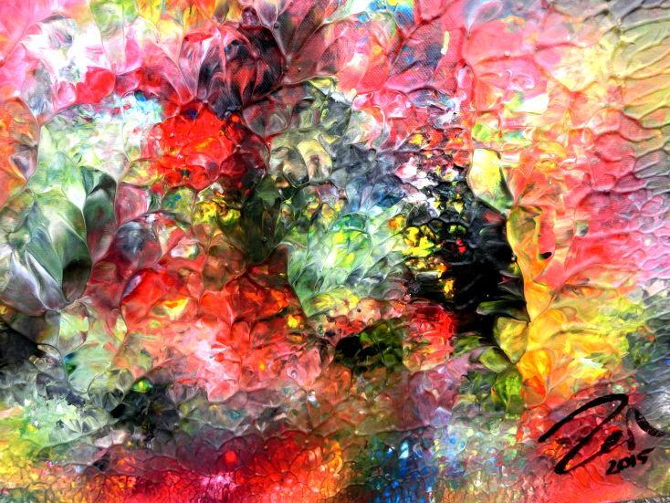 Dieses Werk ist wie alle meine Bilder: spontan entstanden, ganz intuitiv und ohne festes Konzept, und spiegelt oft meine momentane Stimmung wider wie auf der Leinwand festgehalten wurde.