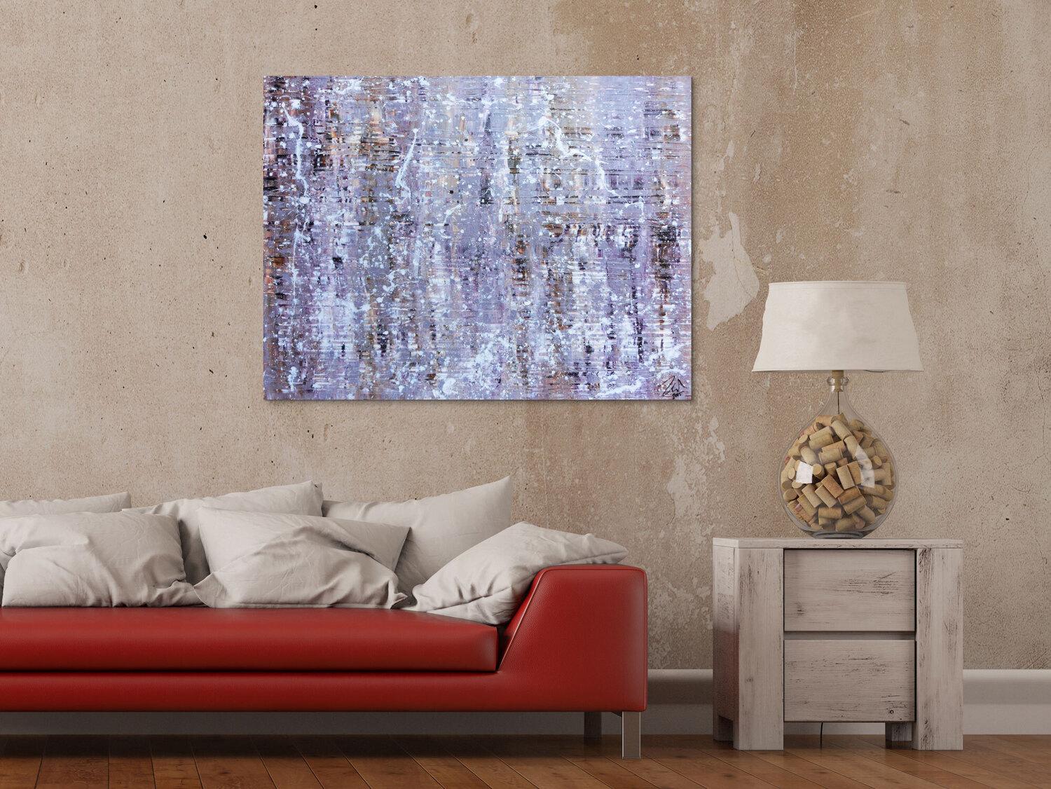 Modernes Acrylbild abstrakt in lila weiß schlicht
