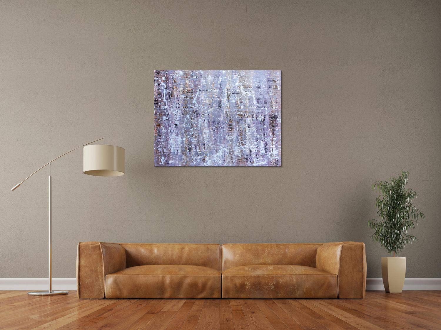 Abstraktes Gemälde auf Leinwand Modernes Acrylbild abstrakt in lila weiß schlicht in 80x100cm von Alex Zerr