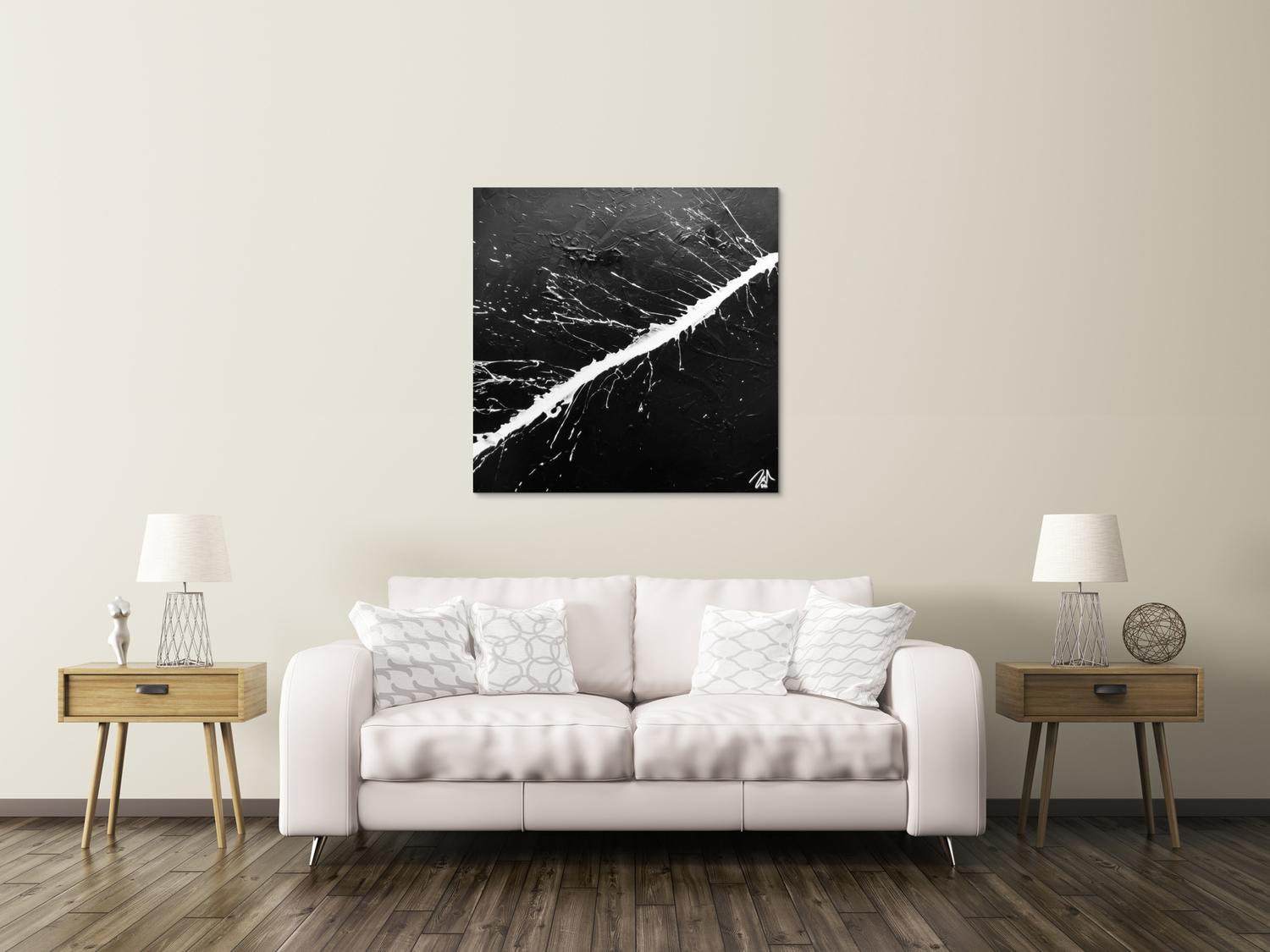 Abstraktes Gemälde auf Leinwand Modernes Acrylbild abstrakt minimalistisch in schwarz weiß in 100x100cm von Alex Zerr