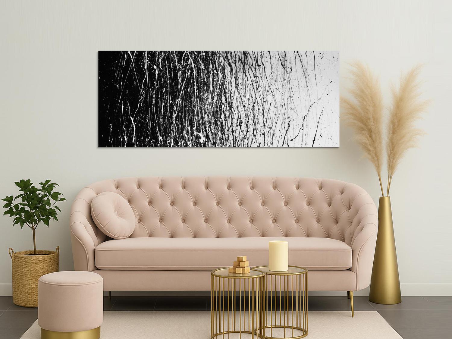 Abstraktes Gemälde auf Leinwand Modernes Acrylbild abstrakt schwarz weiß in 80x200cm von Alex Zerr