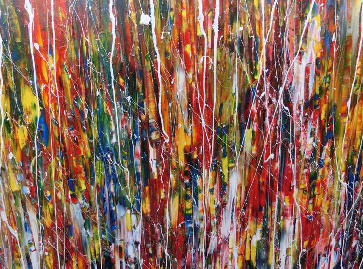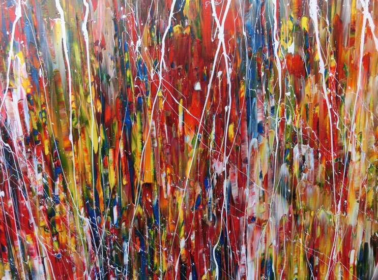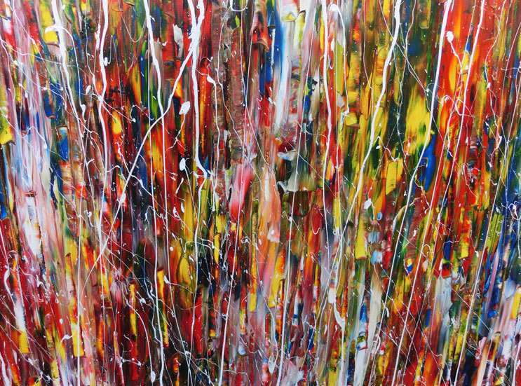 Hallo, ich bin Alex Zerr, der Künstler hinter diesem Gemälde. In meinem Atelier in Bad Lippspringe erschaffe ich abstrakte Acrylbilder, überwiegend im Action-Painting-Stil. Meißtens mit Acrylfarben und auf sehr großen XXL-Leinwänden, die meinem kreativen Prozess besonders viel Freiheit erlauben und oft zu beeindruckenden Gemälden führen.