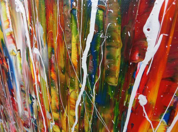 Dieses abstrakte Acrylbild ist ein handgemaltes Original vom Künstler Alex Zerr aus Bad Lisppringe und ist im Jahr 2014 in seinem Atelier entstanden. Das Bild hat eine Größe von 100x200cm und ist bereits auf einem hochwertigen und stabilem Rahmen aufgespannt. Dadurch kann das Bild nach der Lieferung direkt an die Wand gehängt werden und sofort in Ihrem Raum wirken. Alle Seiten des Gemäldes sind passend zum Motiv bemalt, so dass kein zusätzlicher Rahmen benötigt wird.