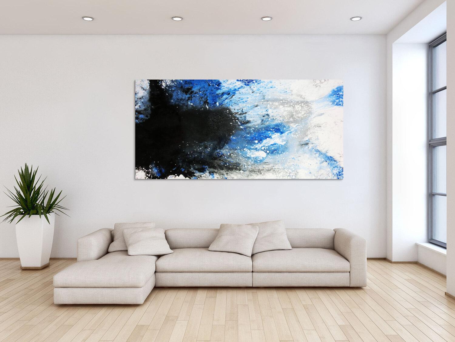 Abstraktes Gemälde auf Leinwand Modernes Acrylbild abstrakt weiß/blau in 100x200cm von Alex Zerr