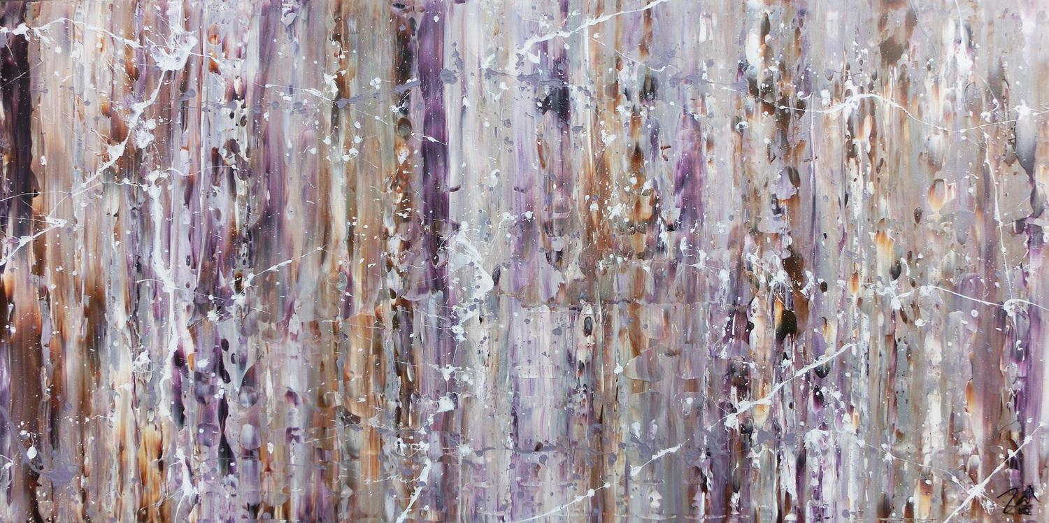 Abstraktes Gemälde auf Leinwand Modernes Acrylbild in lila und weiß abstrakt in 90x180cm von Alex Zerr