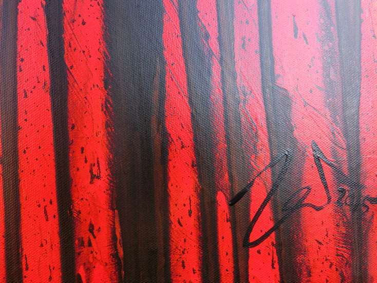 Das Bild ist vom Künster Alex Zerr auf der Vorderseite signiert ggf. ist auf der Rückseite des Bildes der Handabdruck des Künstlers zu finden. Dadurch erhält das Bild ein nicht zu kopierendes und persönliches "Siegel", wodurch Ihnen die Echtheit garantiert wird.