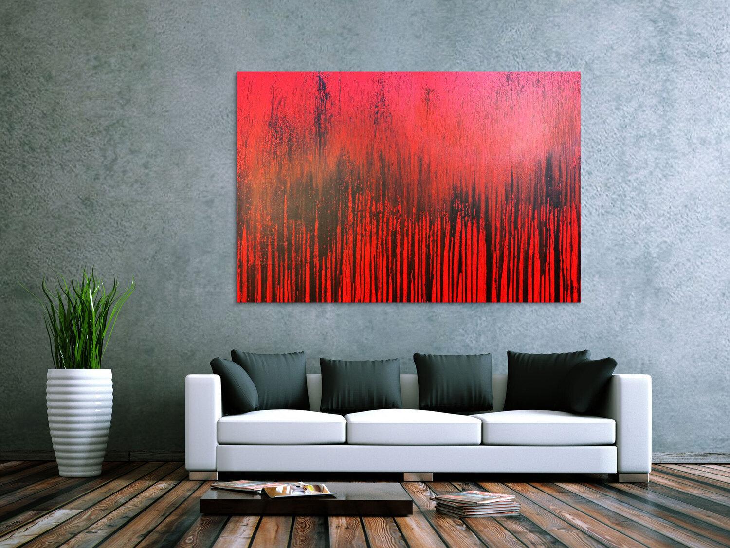Abstraktes Gemälde auf Leinwand Modernes Acrylbild minimalistisch in rot abstrakt in 110x170cm von Alex Zerr