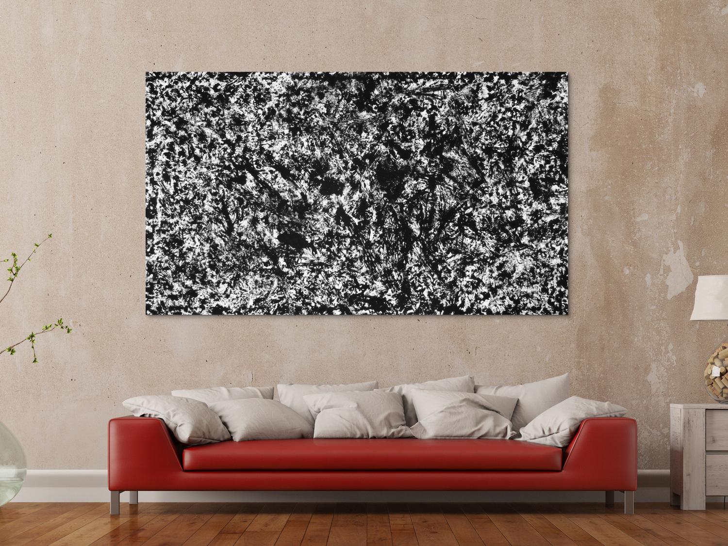 Abstraktes Gemälde auf Leinwand Modernes Acrylbild schwarz weiß in 120x200cm von Alex Zerr