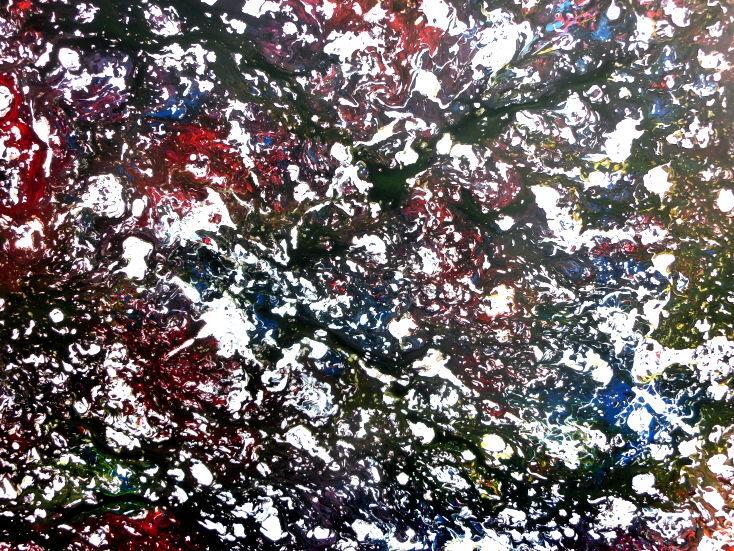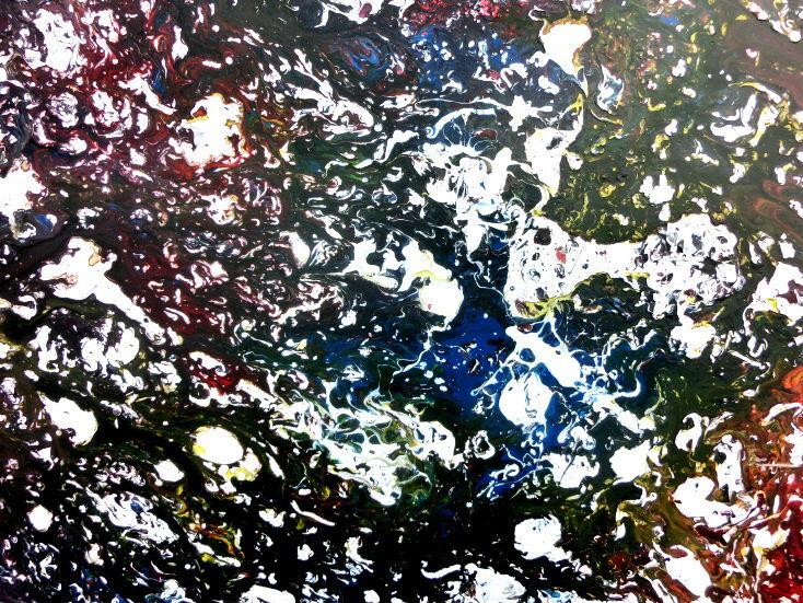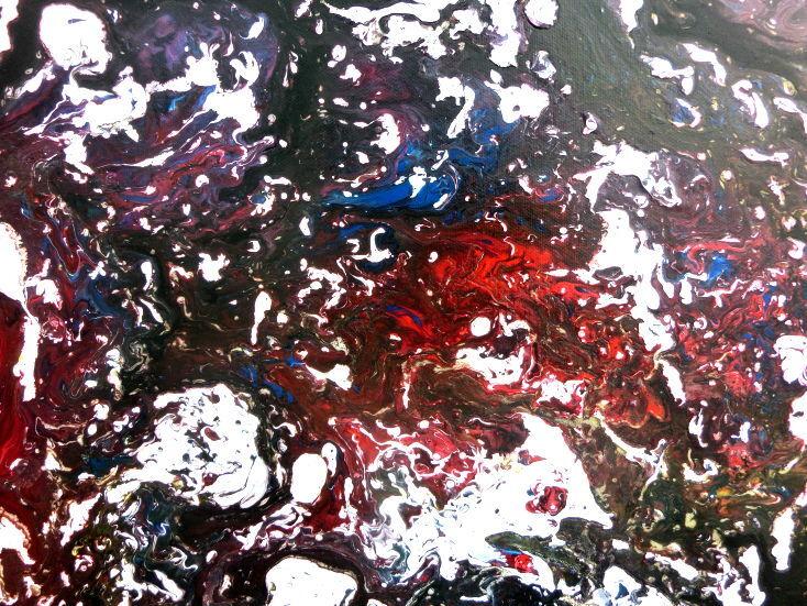 Dieses Werk ist wie alle meine Bilder: spontan entstanden, ganz intuitiv und ohne festes Konzept, und spiegelt oft meine momentane Stimmung wider wie auf der Leinwand festgehalten wurde.