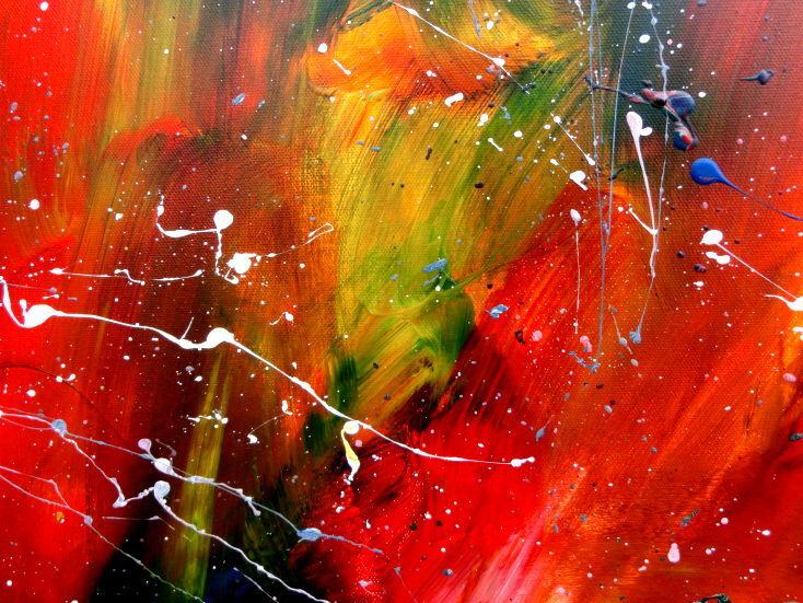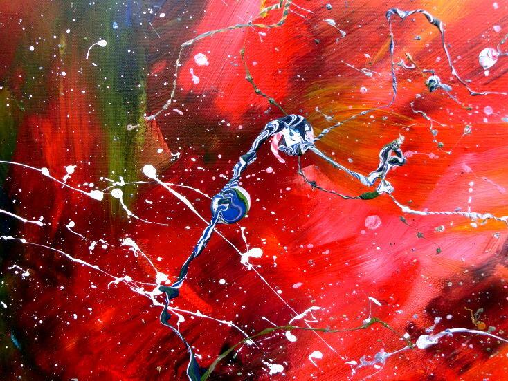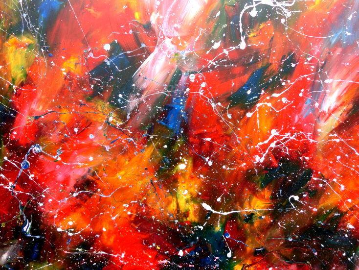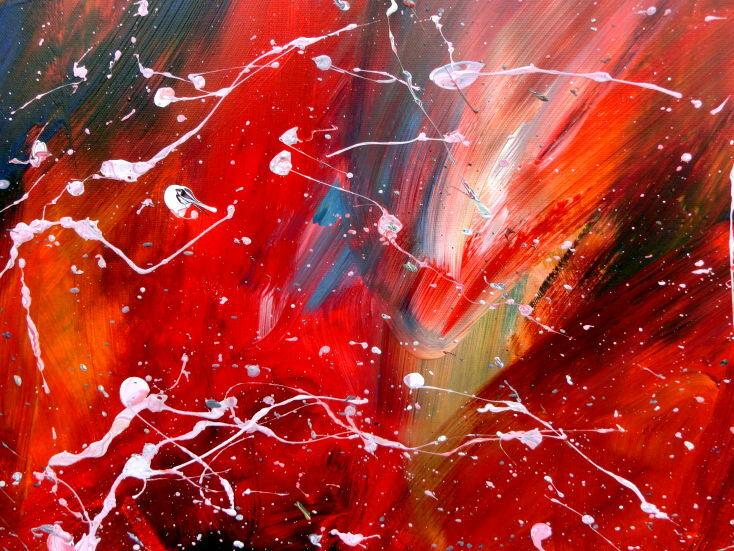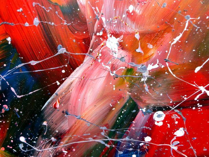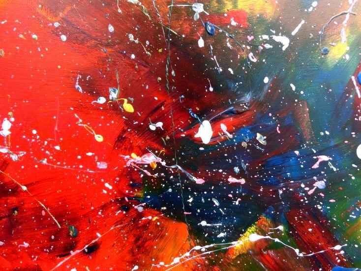 Modernes Acrylgemälde abstrakt bunt mit viel rot und blau