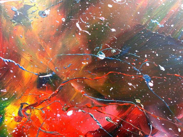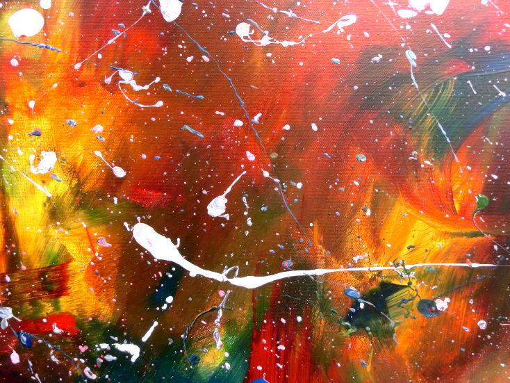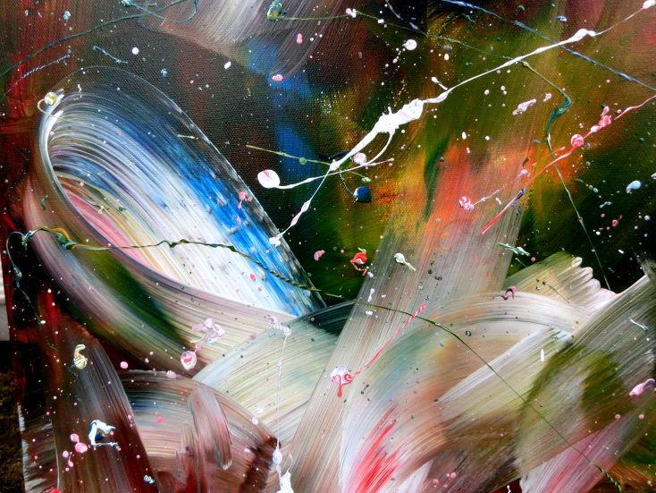 Dieses Werk ist wie alle meine Bilder: spontan entstanden, ganz intuitiv und ohne festes Konzept, und spiegelt oft meine momentane Stimmung wider wie auf der Leinwand festgehalten wurde.