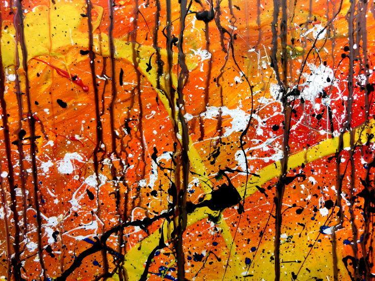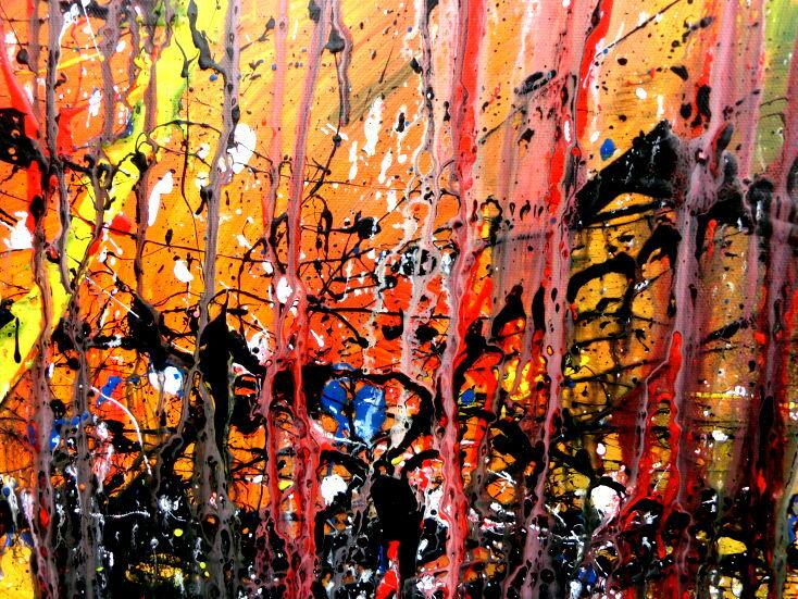 Dieses Werk ist wie alle meine Bilder: spontan entstanden, ganz intuitiv und ohne festes Konzept, und spiegelt oft meine momentane Stimmung wider wie auf der Leinwand festgehalten wurde.