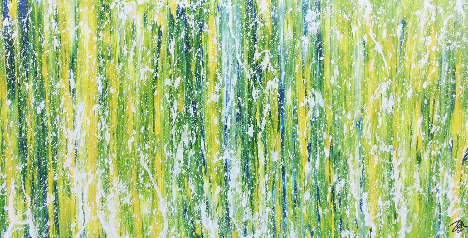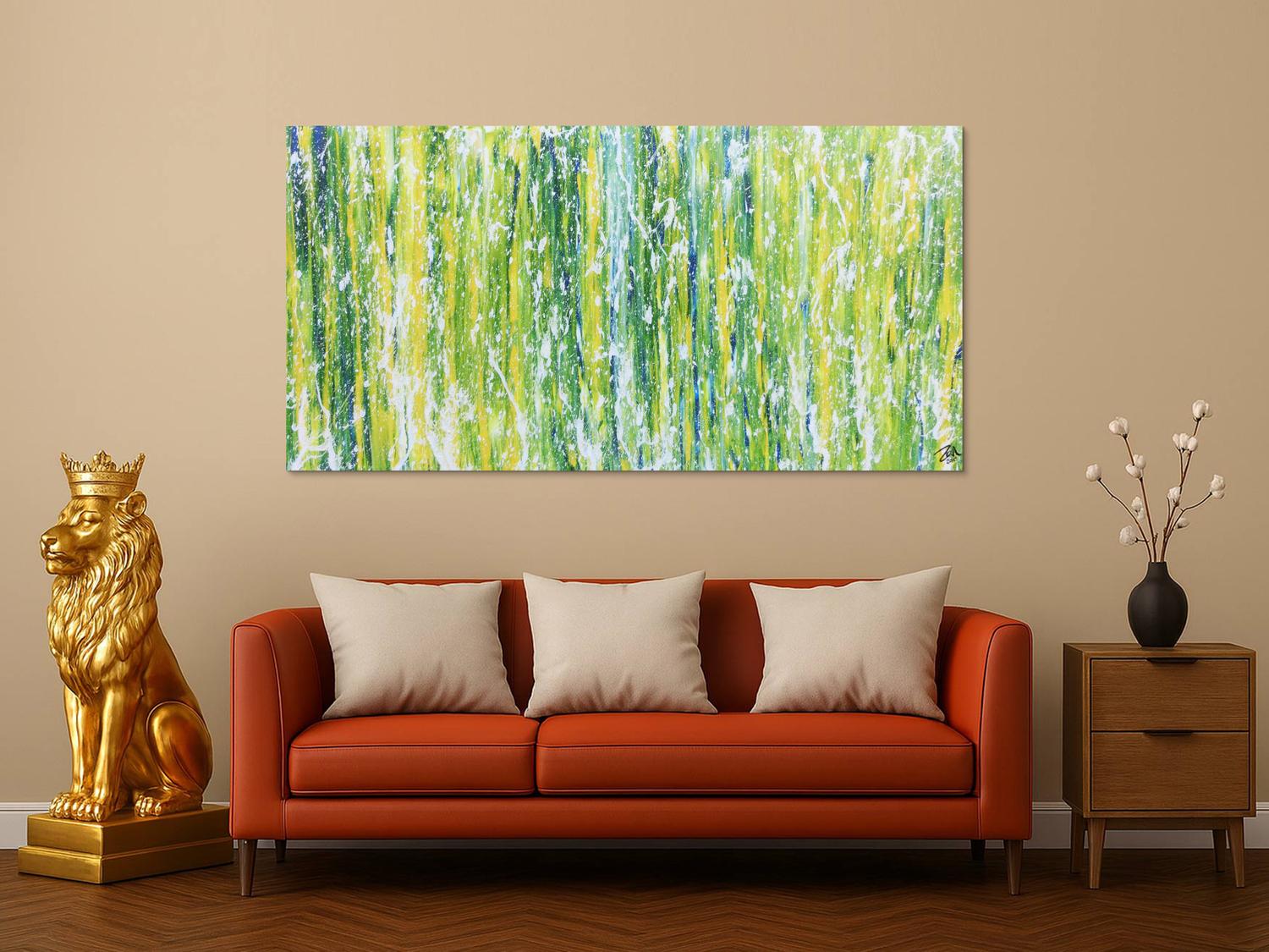 Abstraktes Gemälde auf Leinwand Modernes Acrylgemälde abstrakt in grün schlicht in 90x180cm von Alex Zerr